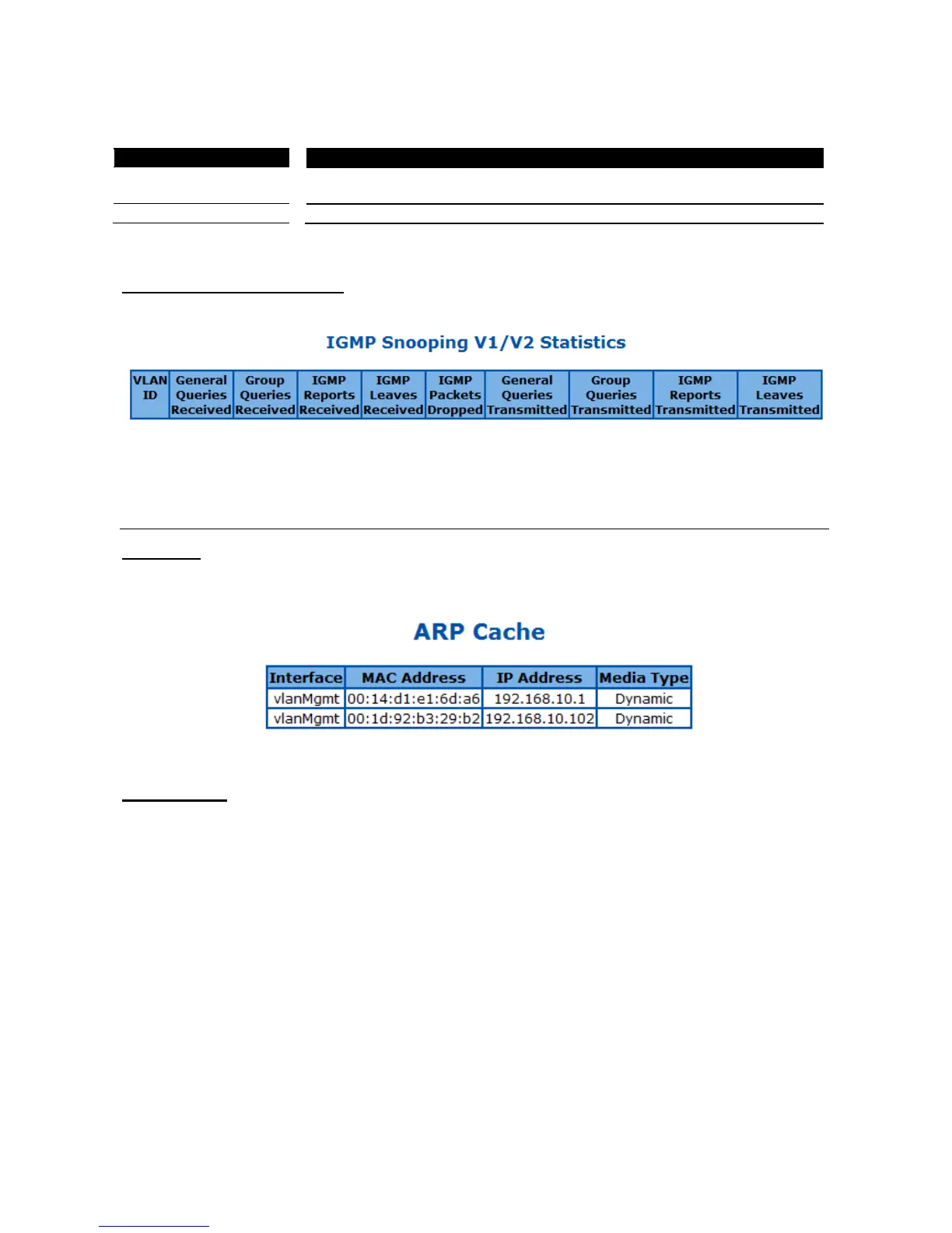This page is to display the ARP information of direct connected hosts learned by the Switch.