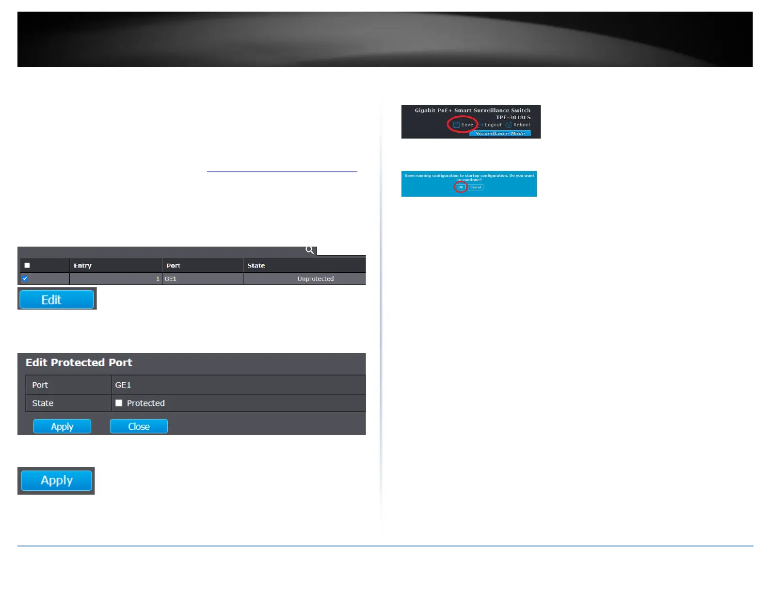 4. For the State, check the Protected setting to set the selected port or ports as