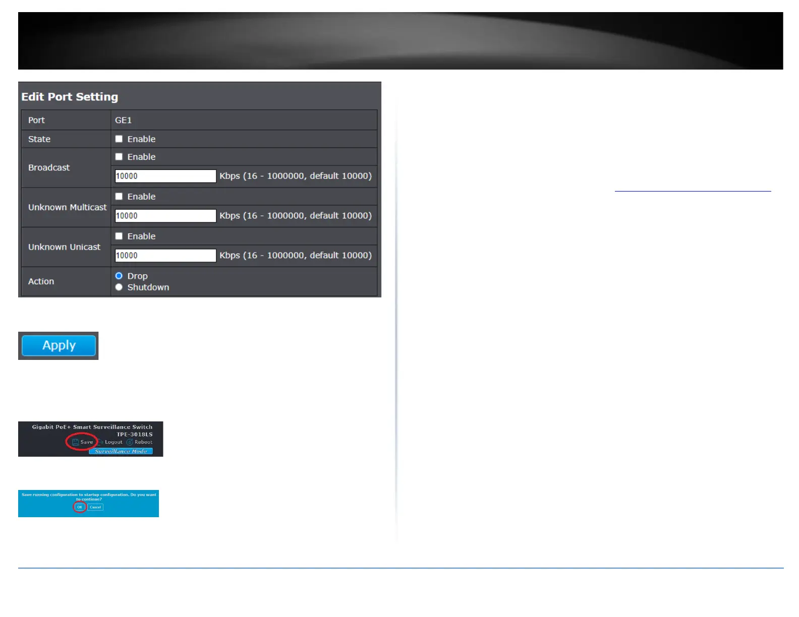 6. In the top right, click Save to save the configuration settings to NV-RAM/startup