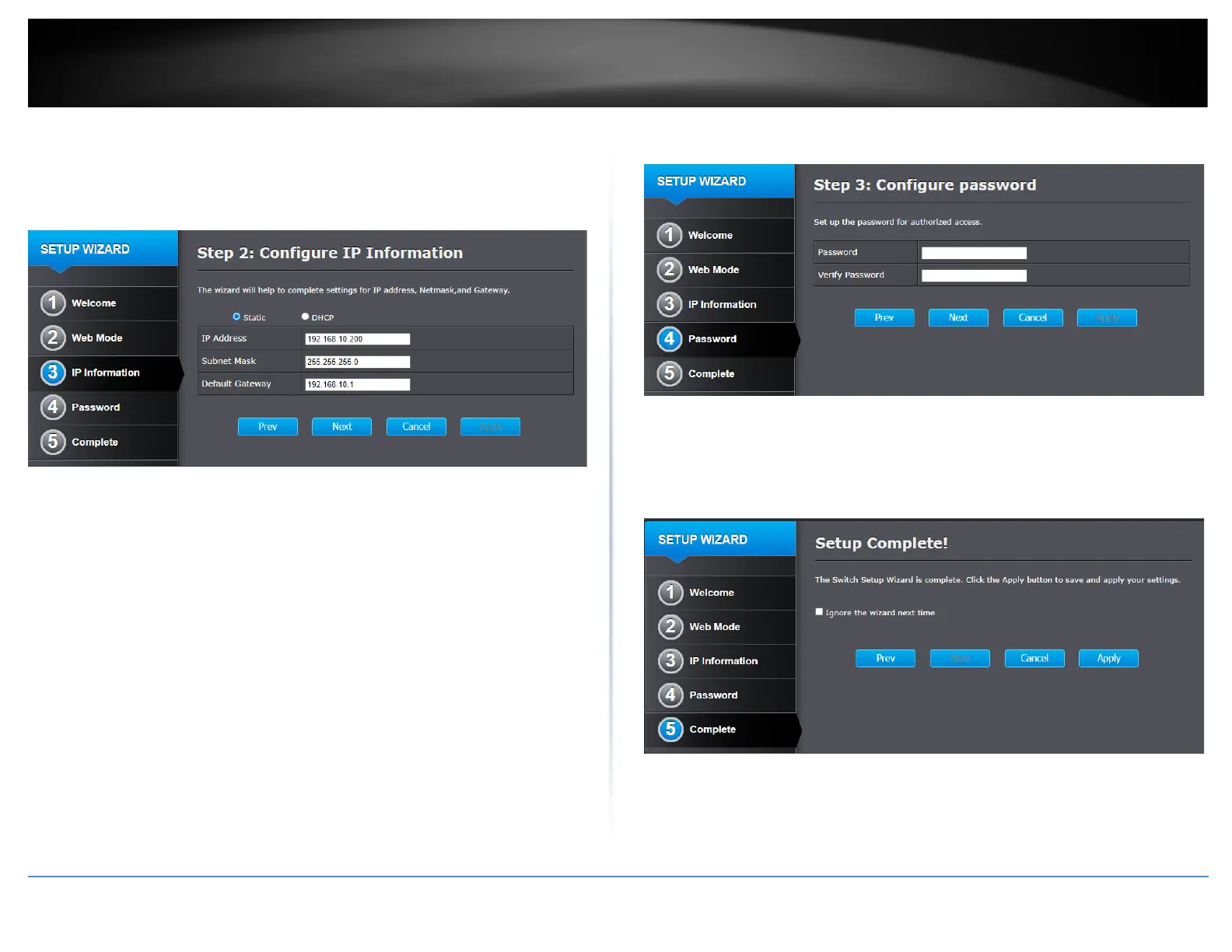 your network by entering the appropriate IP Address, Subnet Mask, and Default
