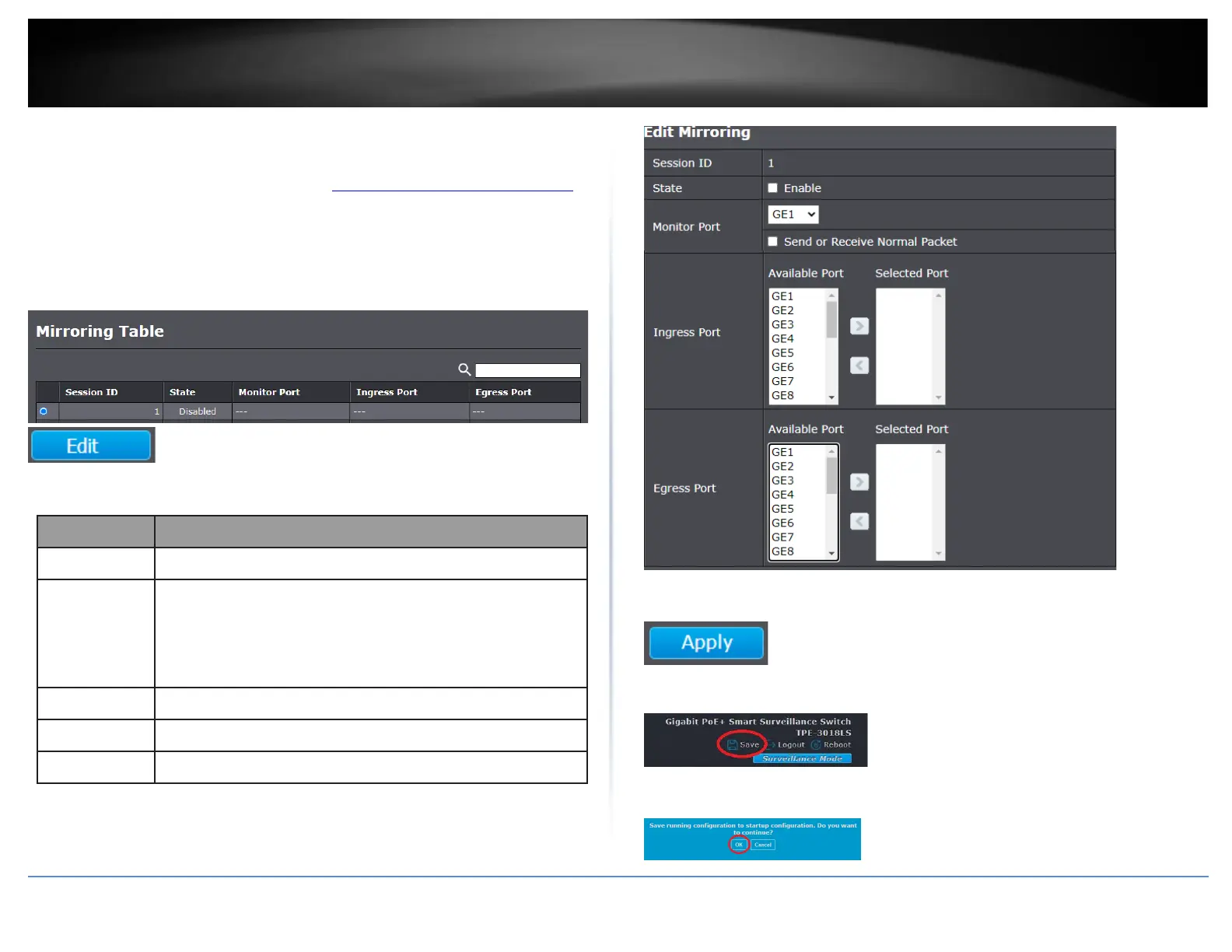 Enabled: Enable port based mirror