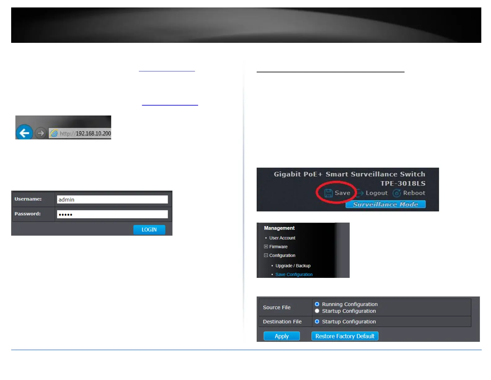 Note: Your switch default management IP address http://192.168.10.200 is accessed