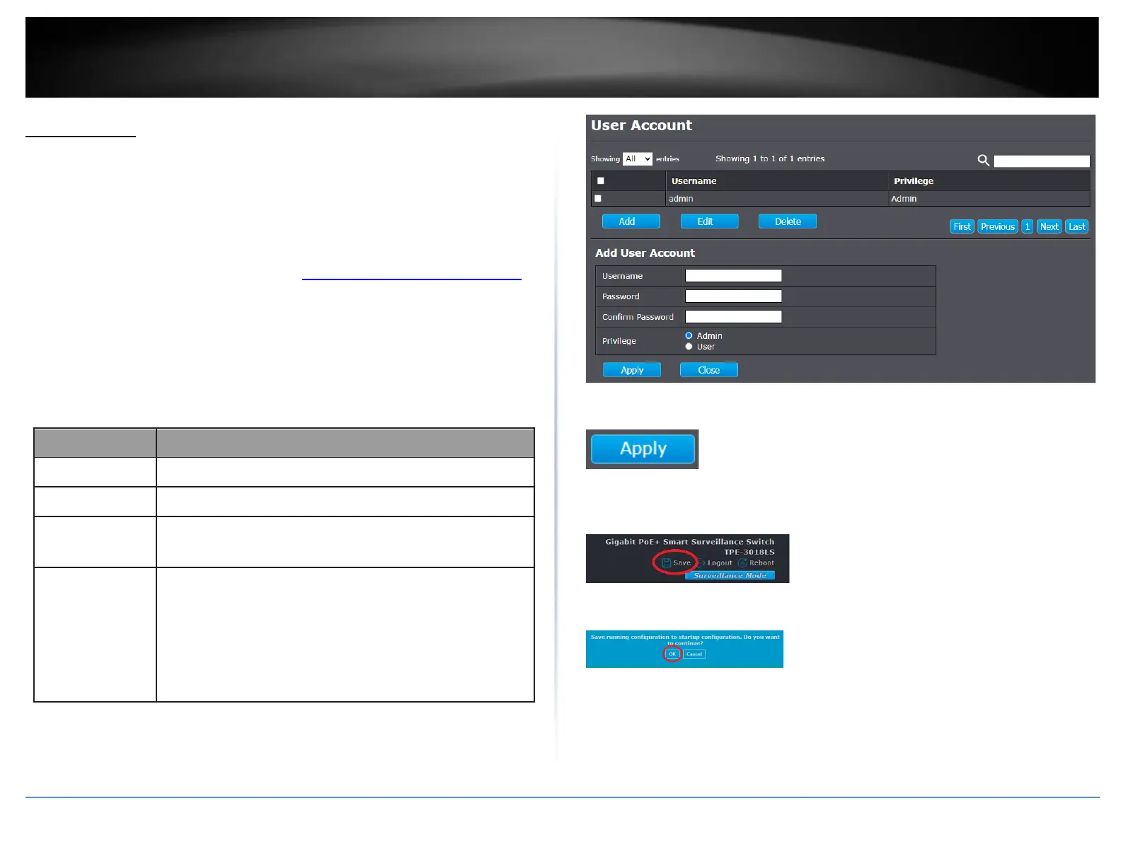 3. Click Add to create a new user or select the account to modify and click Edit. Review