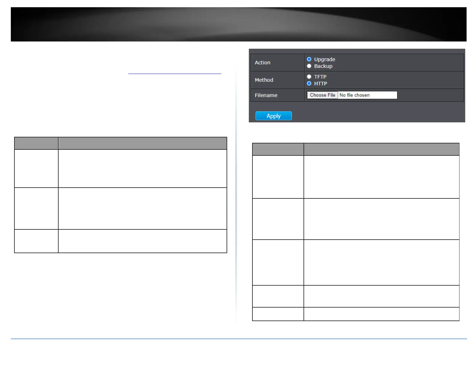 TFTP: Using TFTP to upgrade/backup firmware.
