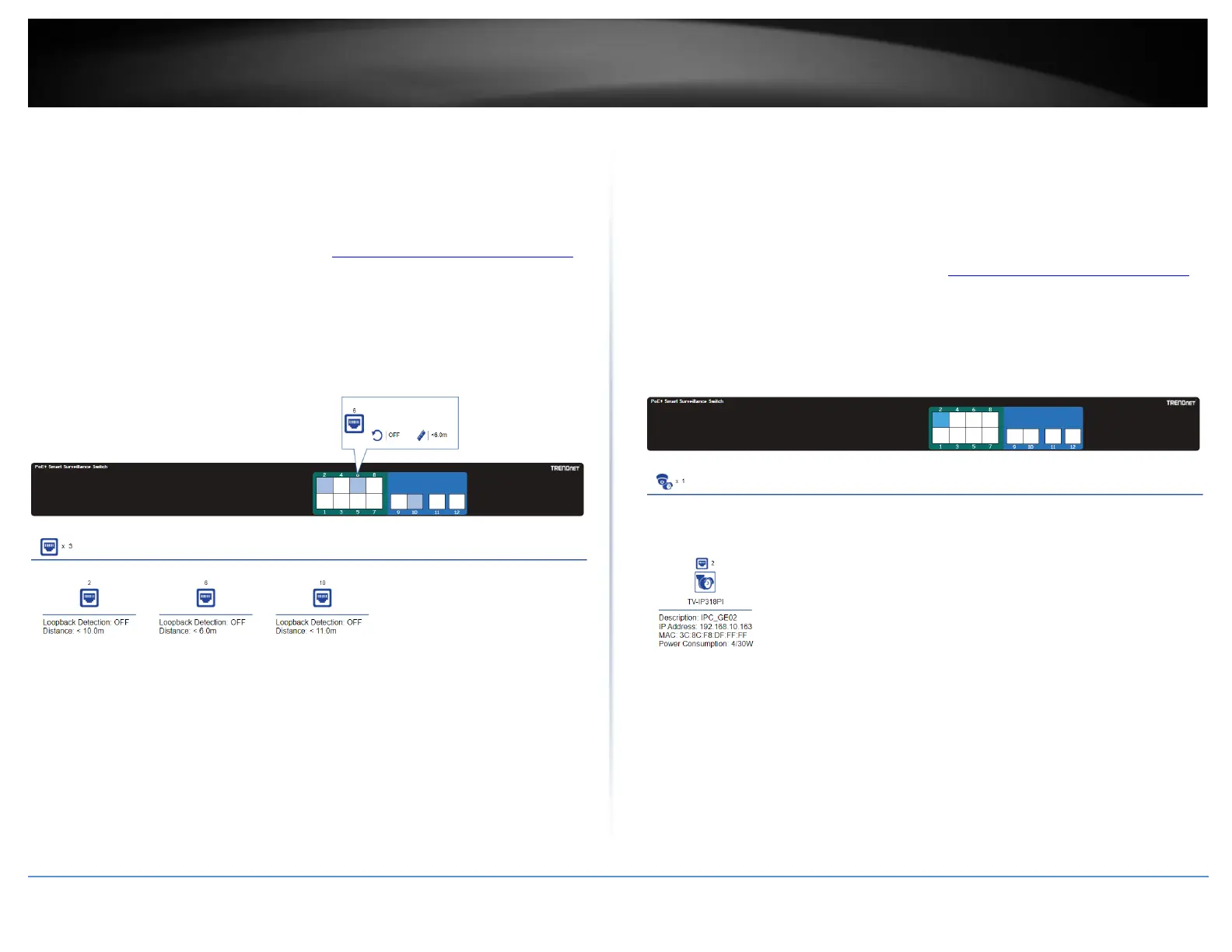 distance between the switch and the connected device, the loopback detection status.