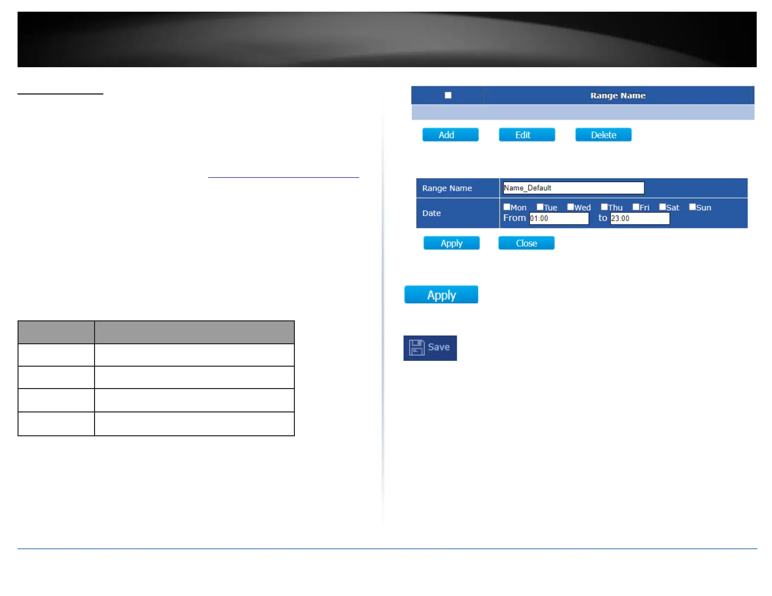 3. Create schedules under the Time Range tab and apply the PoE scheduling