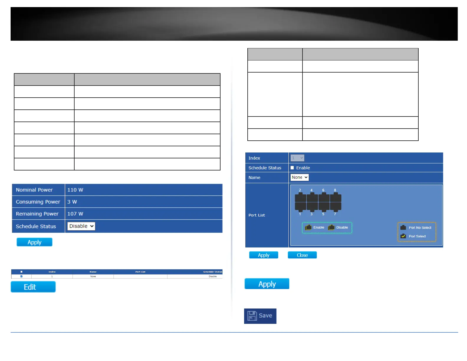 Under the Schedule Status setting, click the drop-down list and Enable to enable PoE