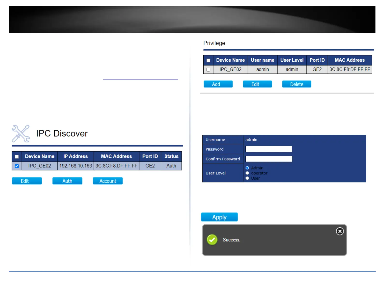 click Apply. A success message will appear if the configuration changes were