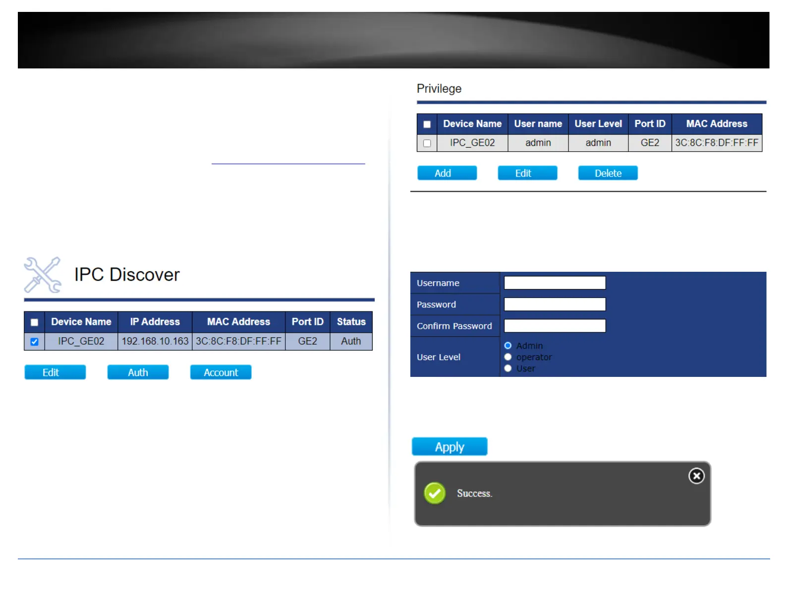 After ONVIF compliant devices have been discovered and successfully authorized, you