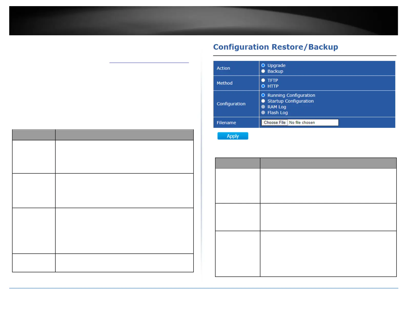 • Backup from HTTP/TFTP - This section will allow you to backup the switch
