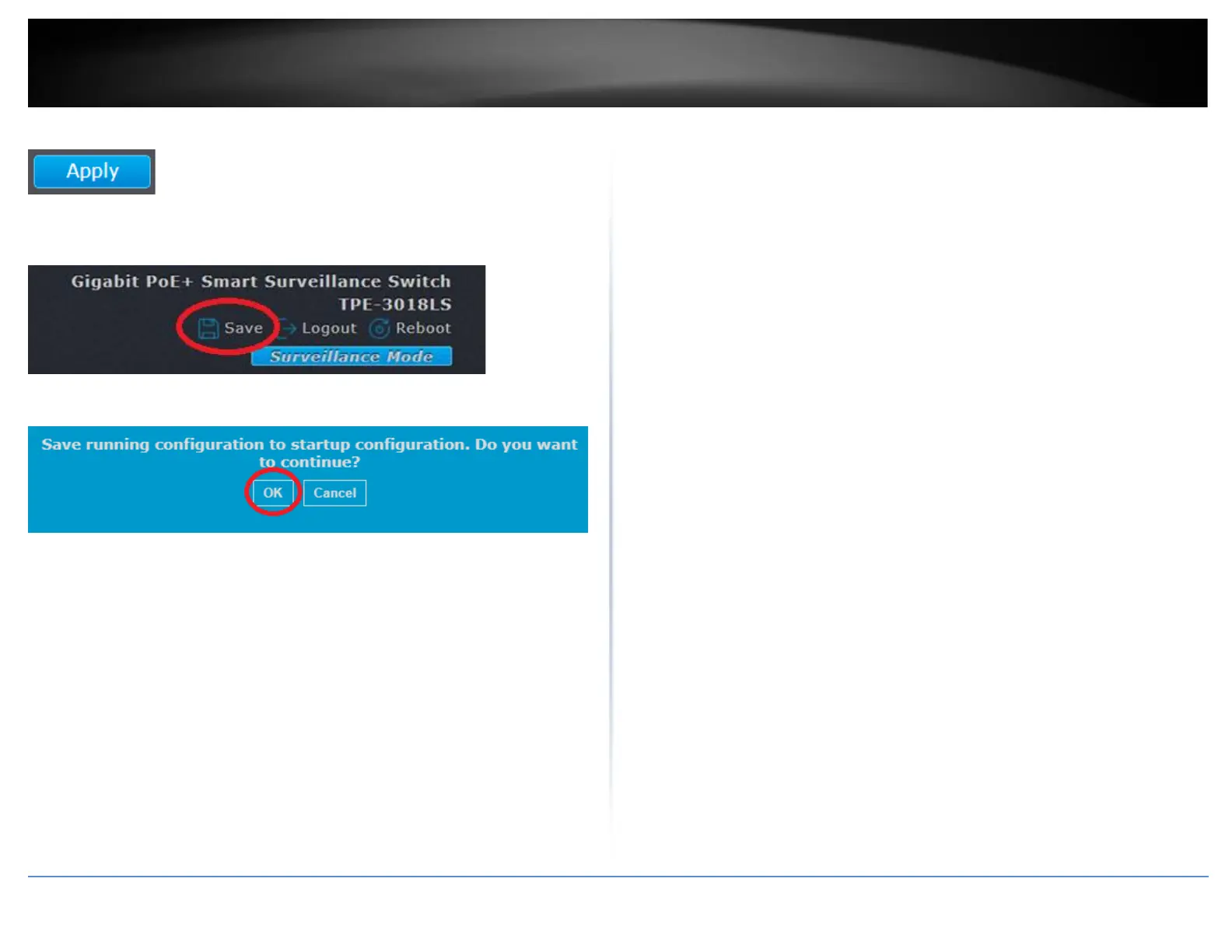 5. In the top right, click Save to save the configuration settings to NV-RAM/startup