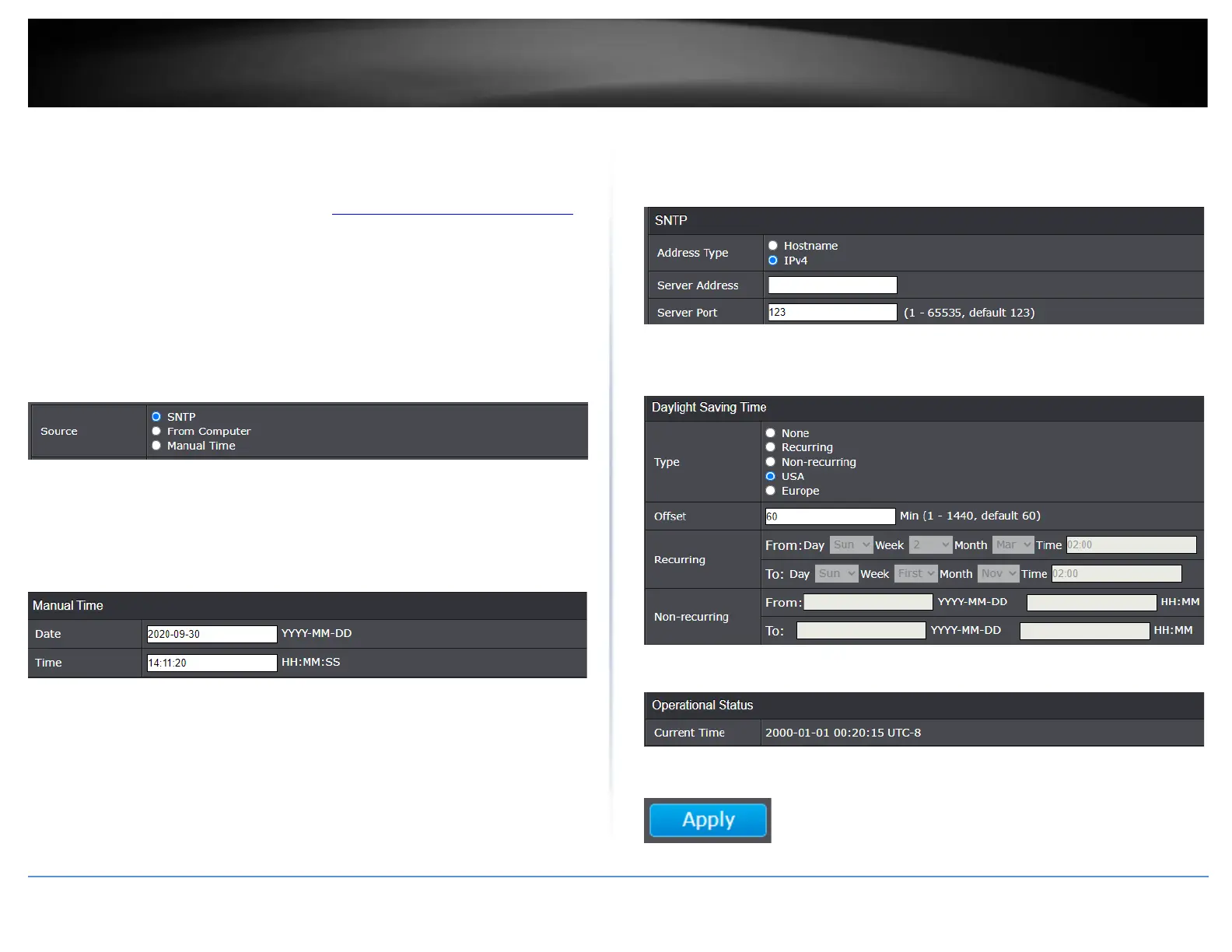 time settings of the switch. If selecting this option, under the Manual