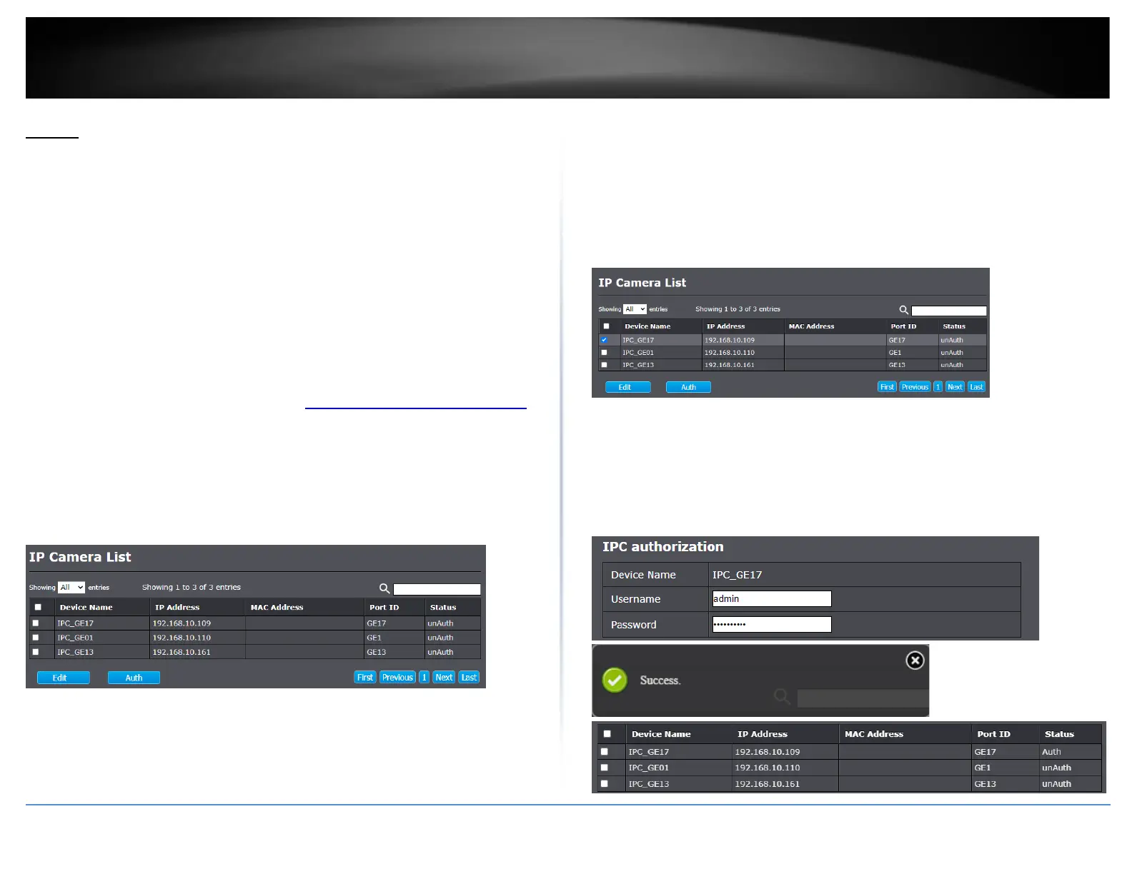 Note: If you are unable to successfully authorize the IP camera, please double check