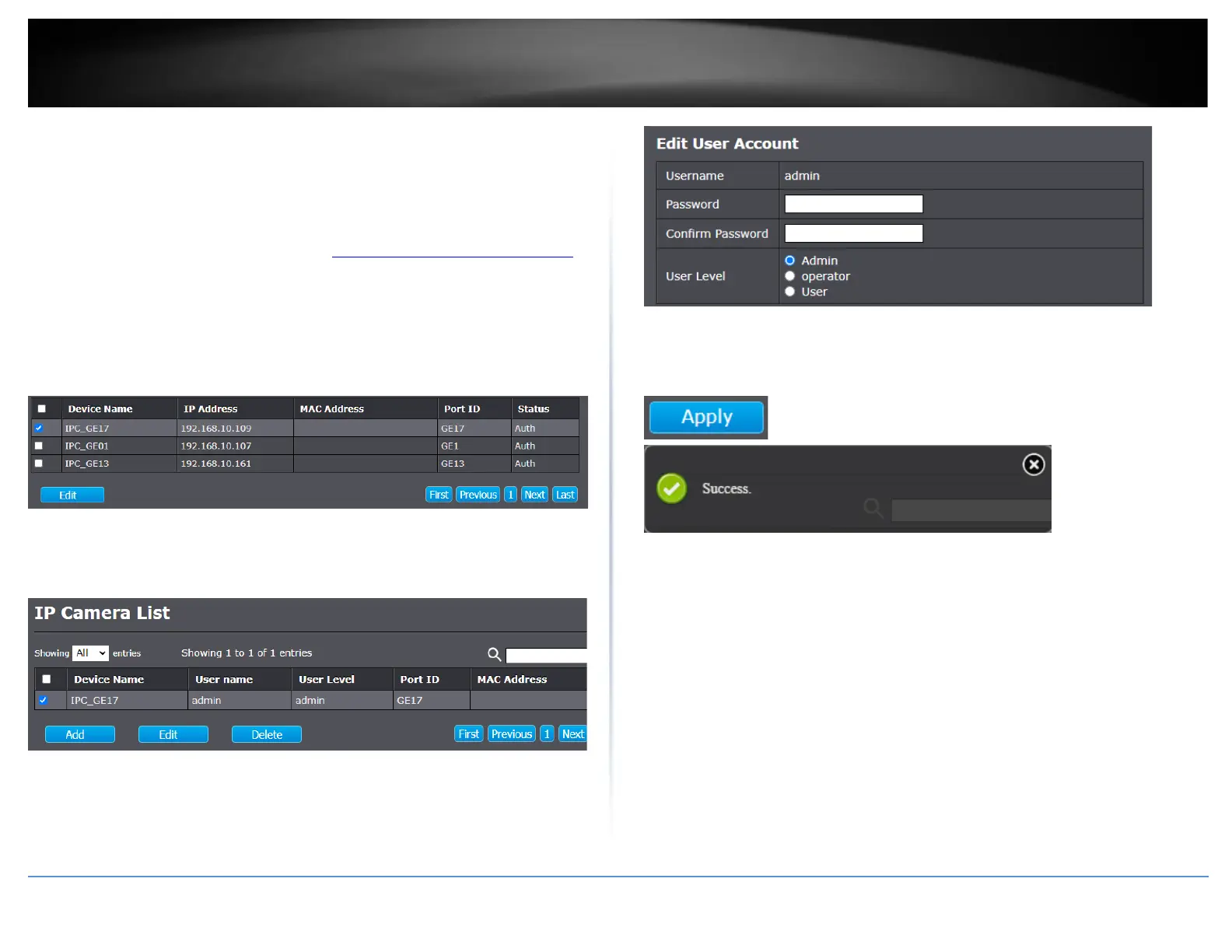 4. Under the IP Camera List section below, a list of the current user accounts of the