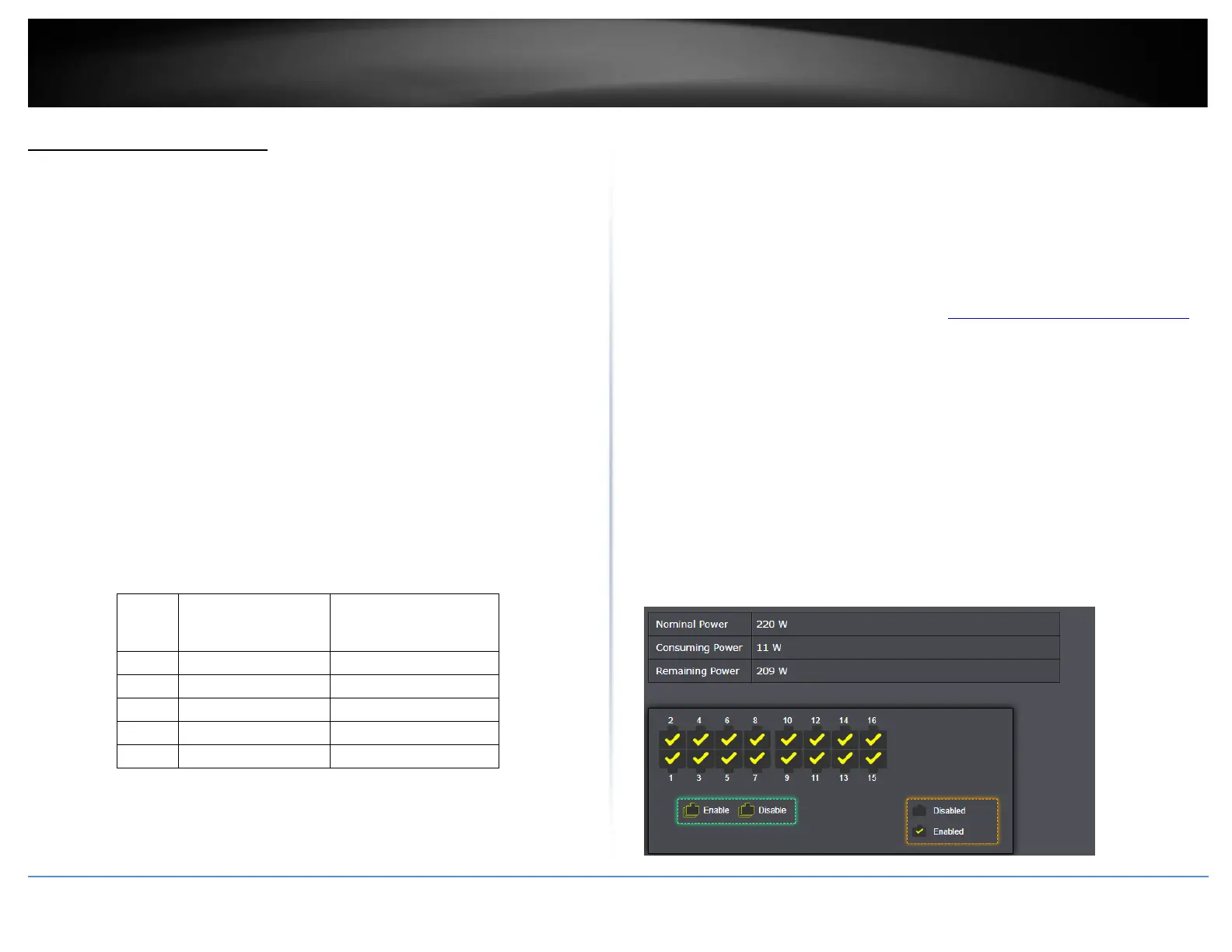 • Remaining Power - Indicates the port with a specific PoE status and that you