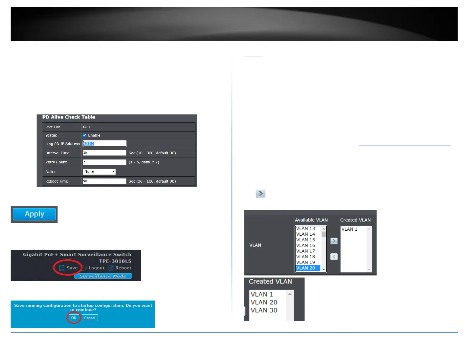 click to add the Created VLAN list to create the new VLAN, then click Apply.