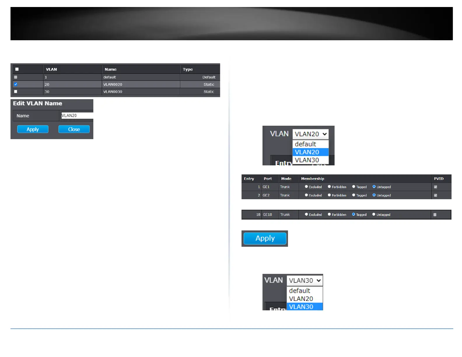VLAN name in the field provided and click Apply.