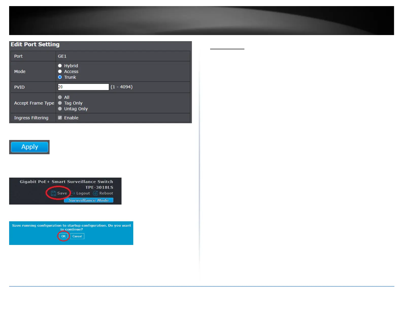 6. In the top right, click Save to save the configuration settings to NV-RAM/startup