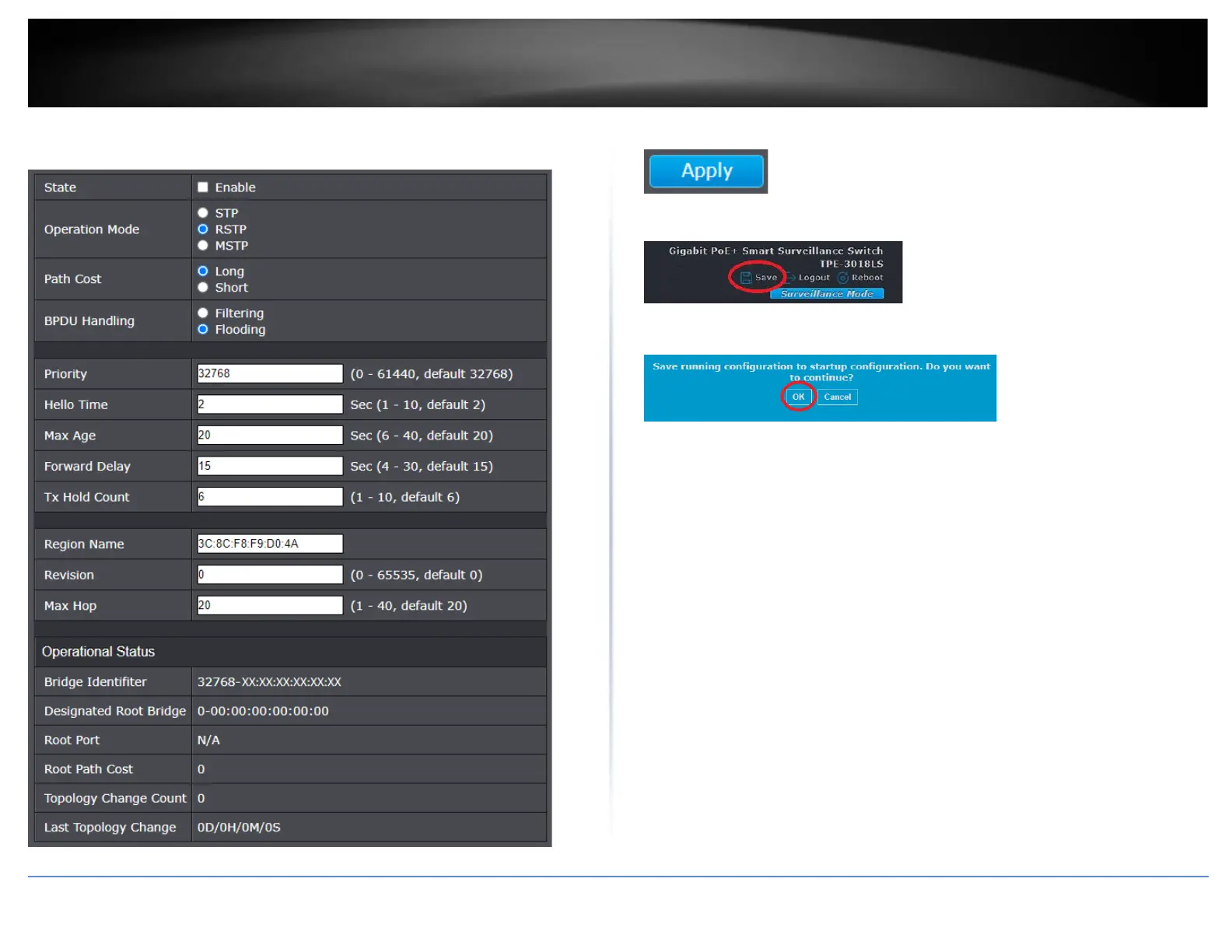 6. In the top right, click Save to save the configuration settings to NV-RAM/startup