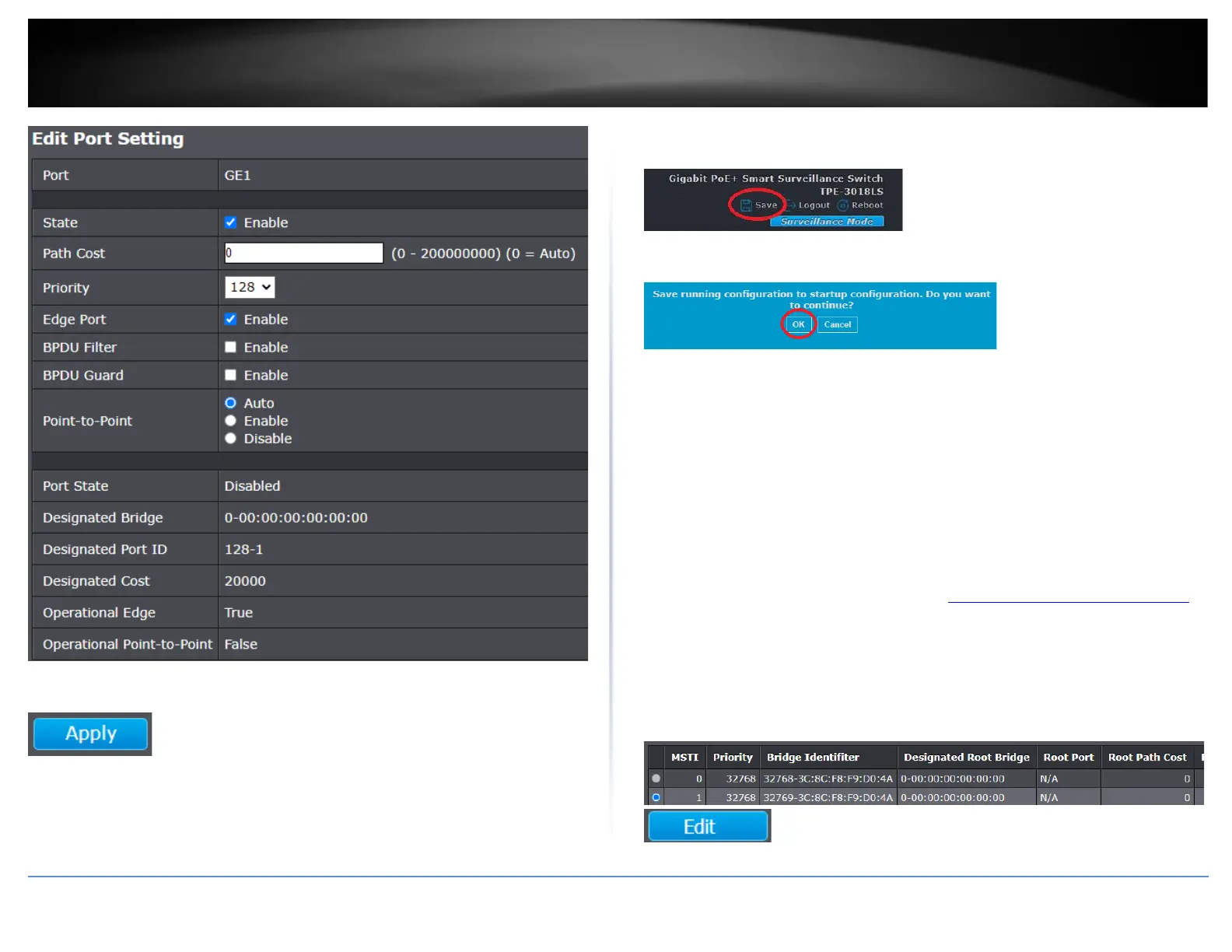 protocol configuration. MSTP must be selected for the Operation Mode under Spanning