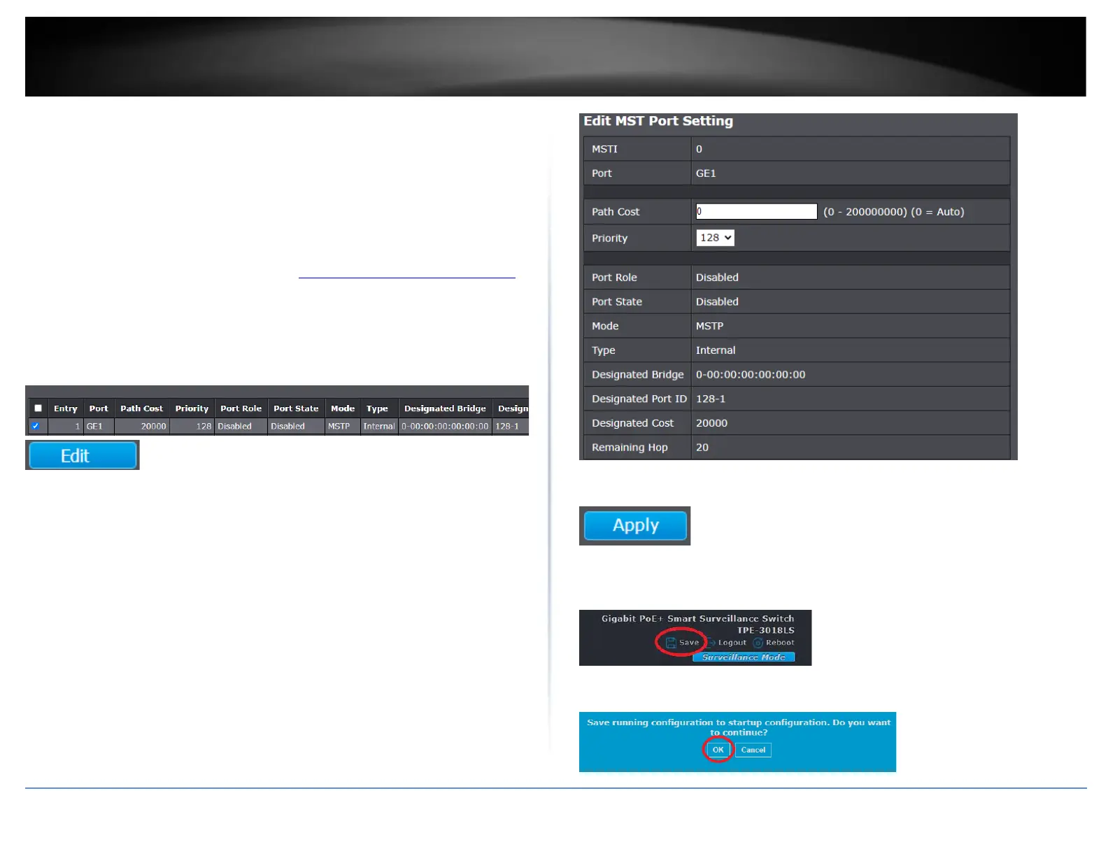 Configure Spanning Tree Protocol MST Port settings (MSTP)