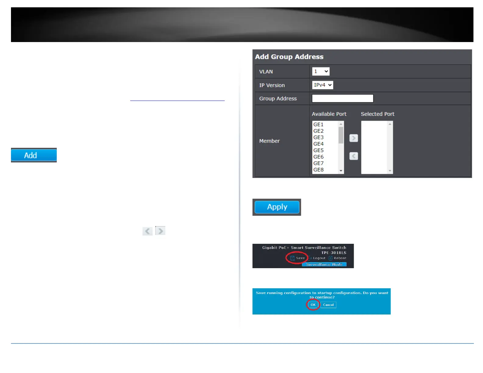 static group address. You can use the arrow buttons to add and