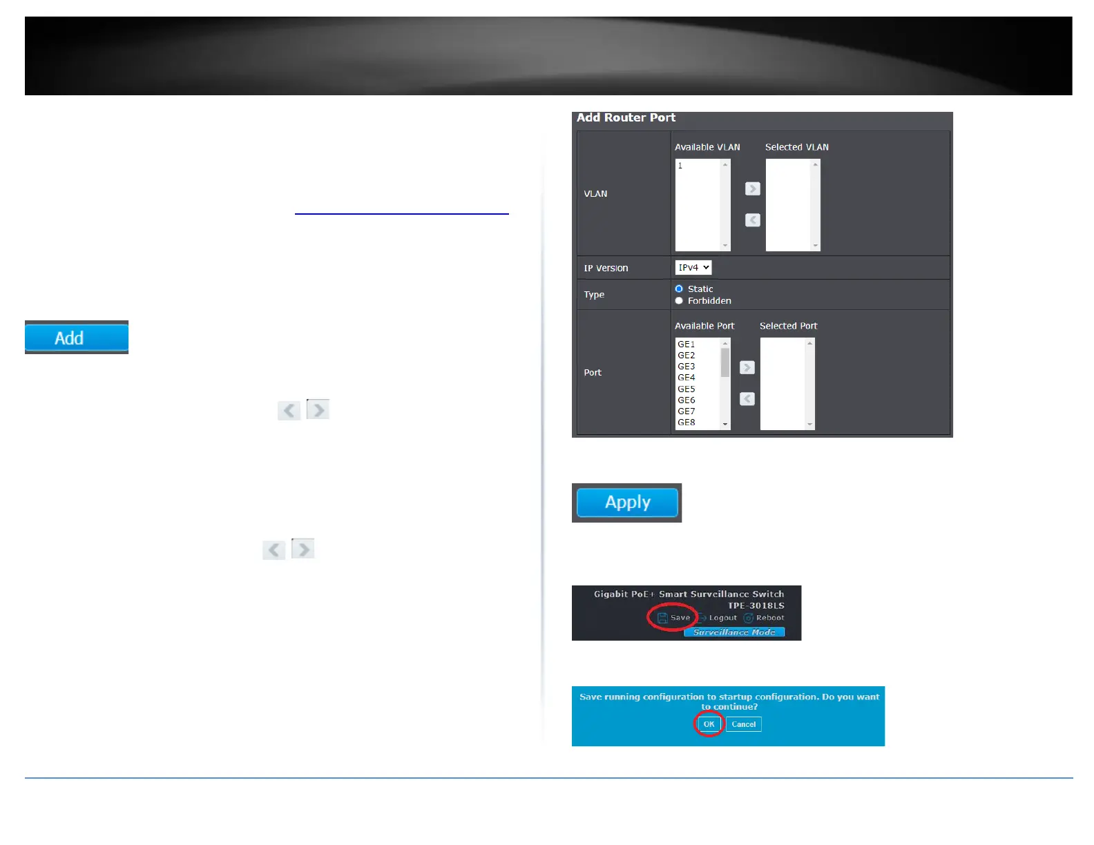 router ports. You can use the arrow buttons to add and remove to
