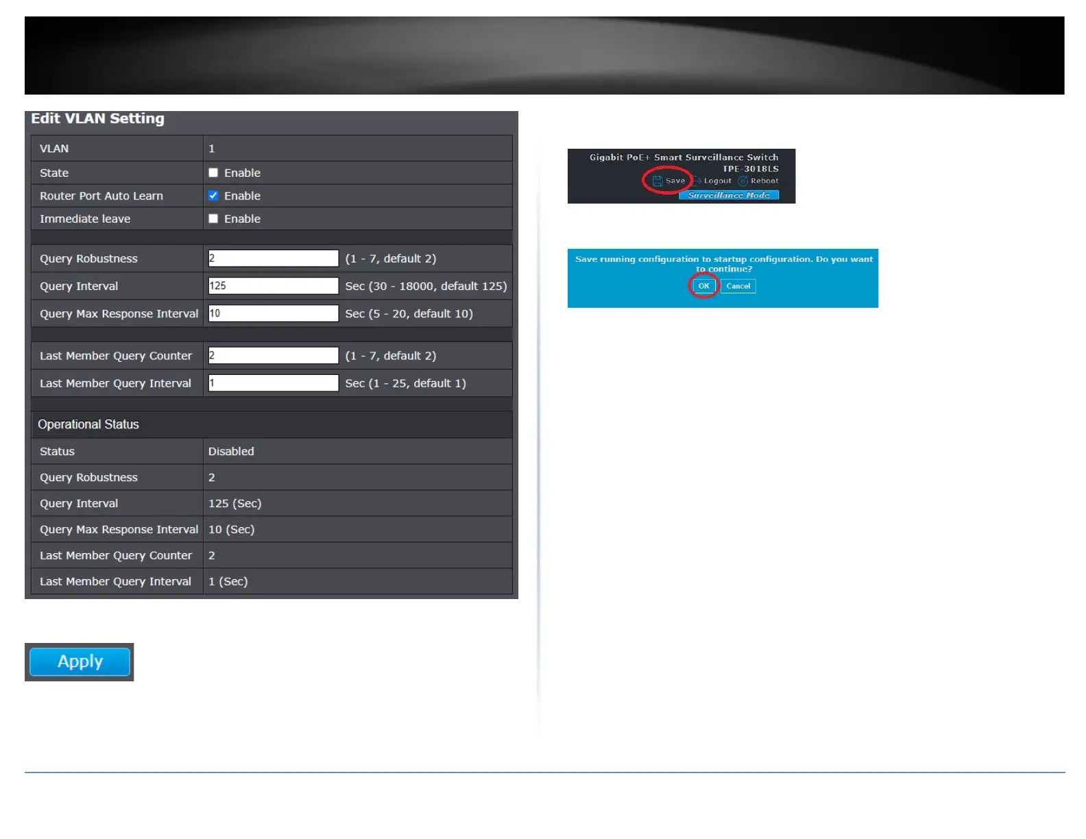 5. In the top right, click Save to save the configuration settings to NV-RAM/startup