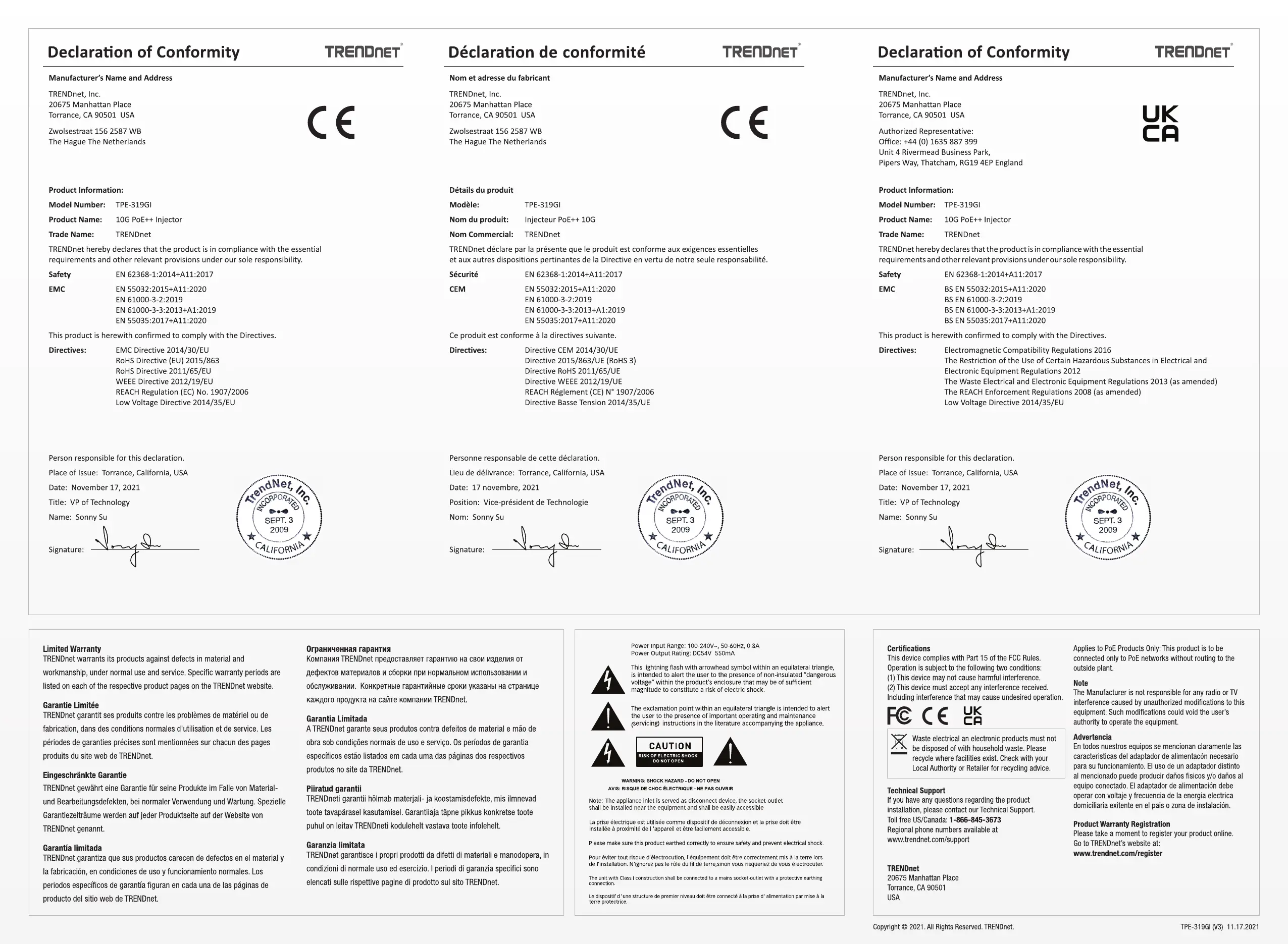 TRENDnet déclare par Ia présente que Ie produit est conforme aux exigences essentielles