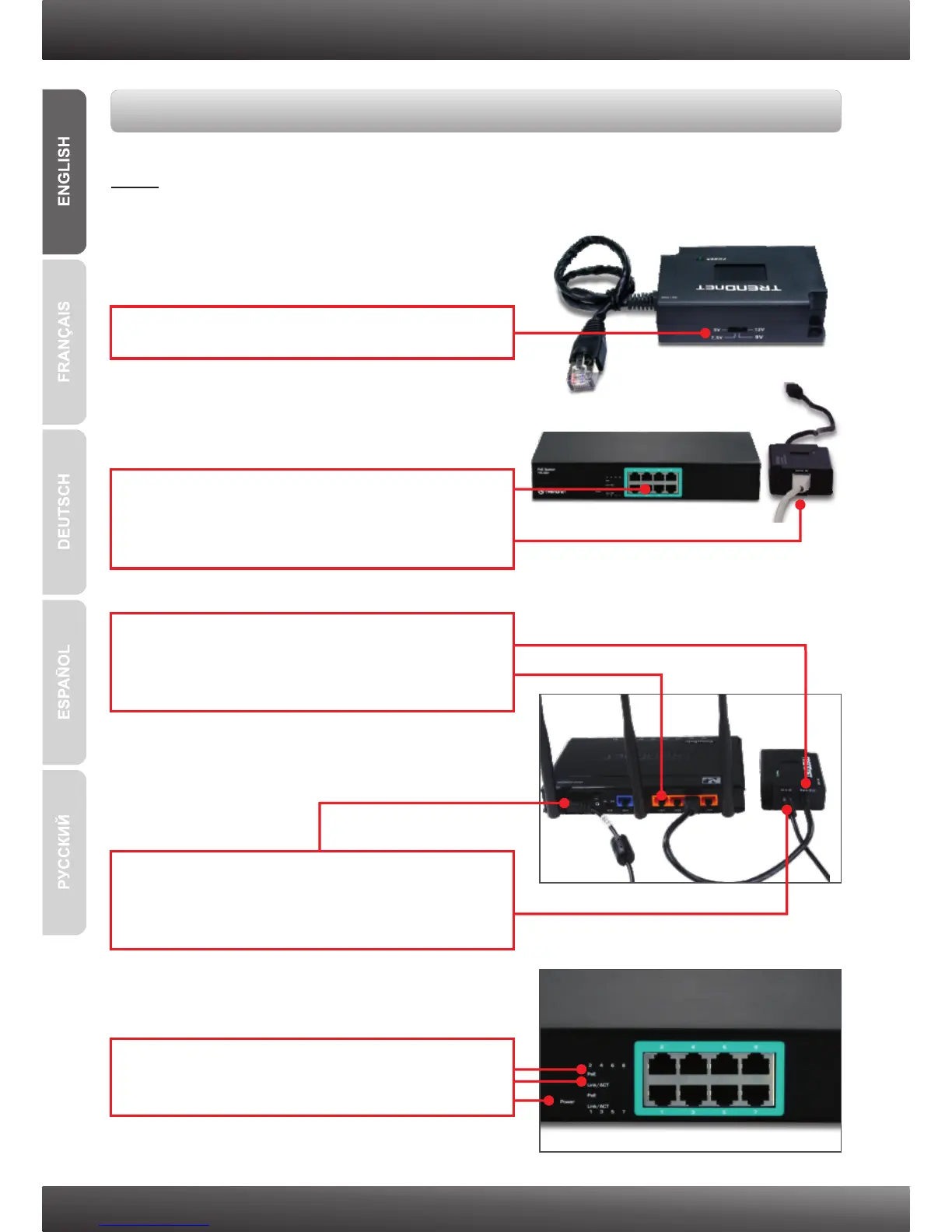 Power, PoE and Link/ACT.