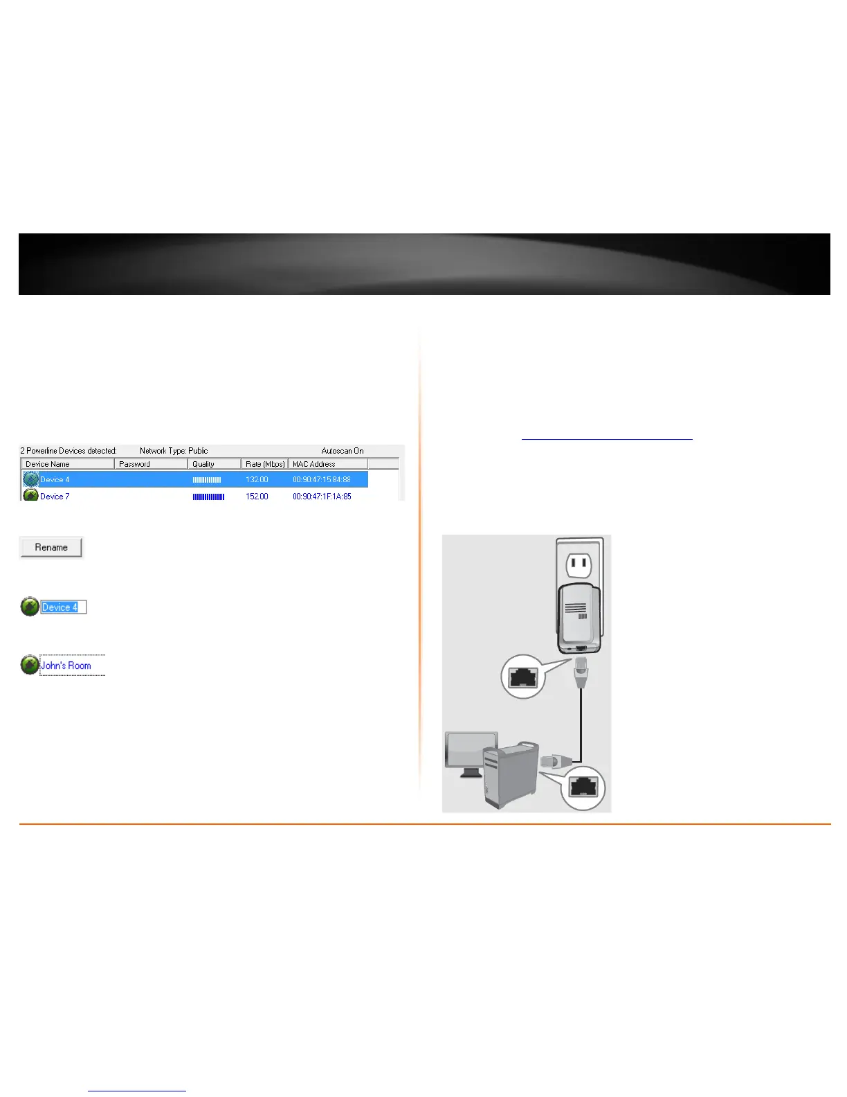 Note: Renaming the Powerline adapters (Remote devices) to describe the location of the