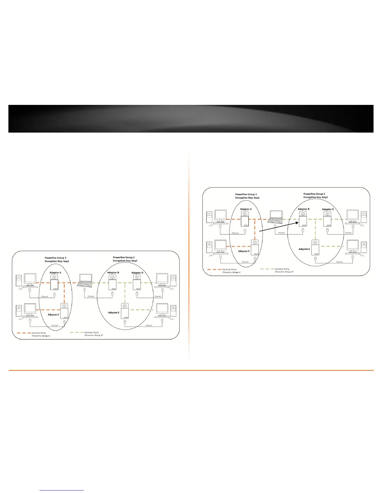 network and Adapters D and E form another powerline network. Adapter B will be