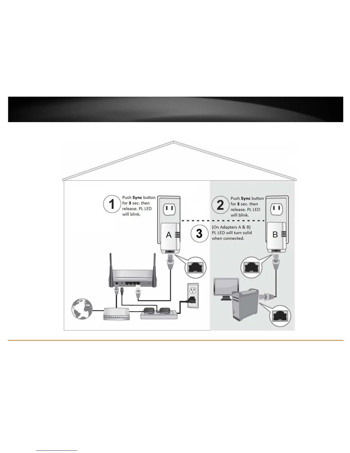 The Sync button procedure below applies to the following TRENDnet models: TPL-303E / TPL-304E / TPL-308E / TPL-309E / TPL-406E / TPL-407E