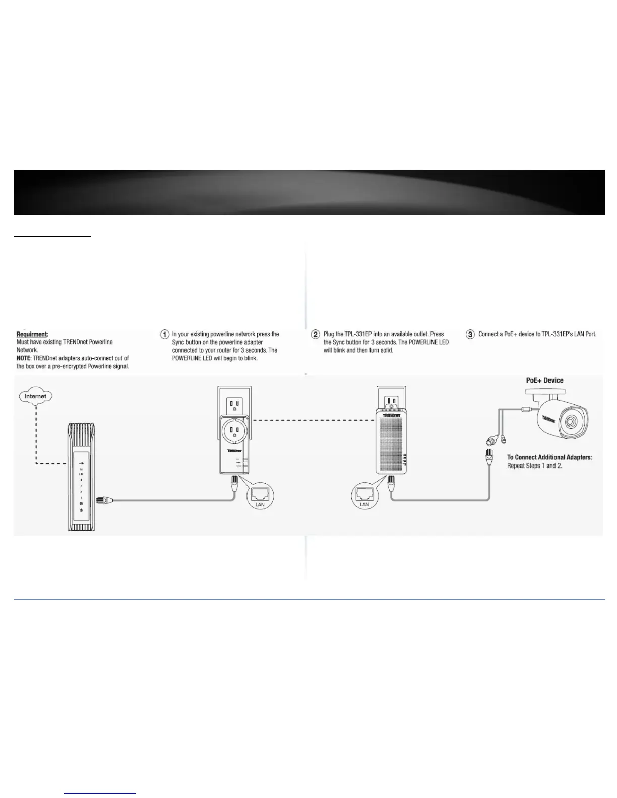 Note: The sync button procedure steps below demonstrate using TRENDnet powerline model TPL-331EP, but the same procedure applies to TRENDnet powerline models TPL-406E / TPL-