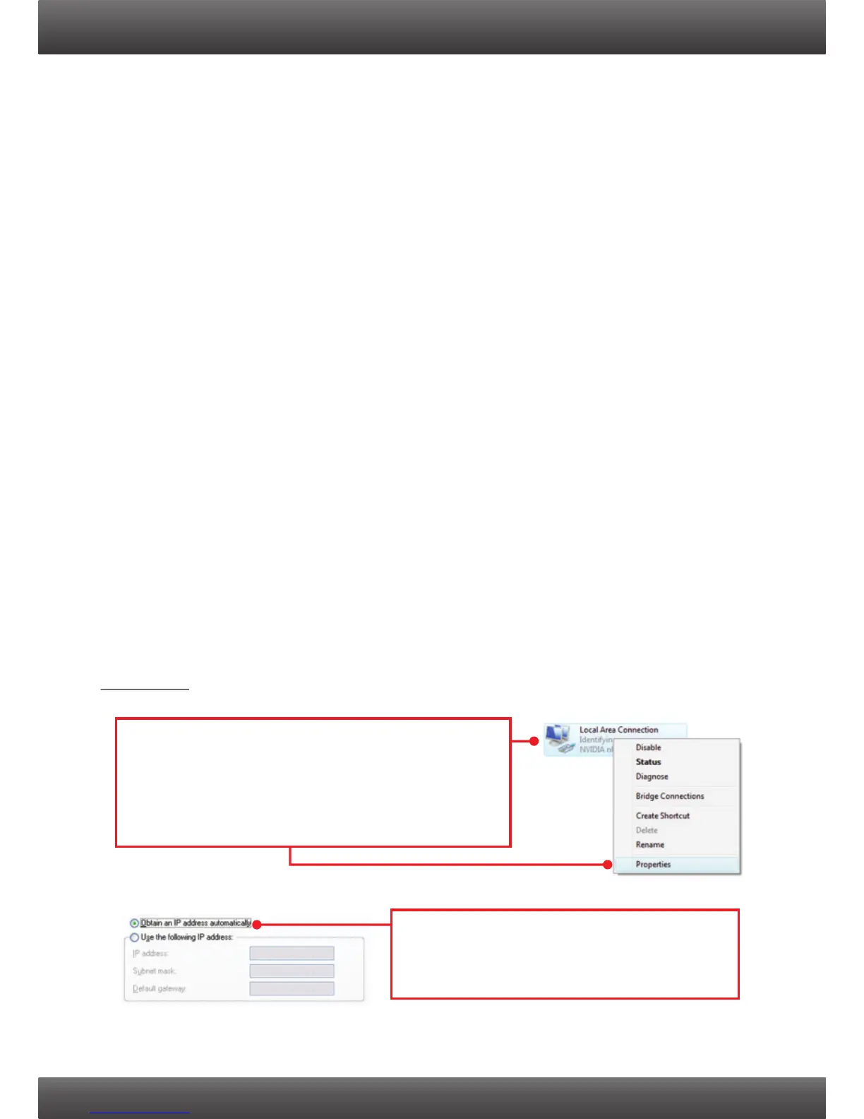 3. Make sure your computer's TCP/IP settings are set to Obtain an IP address