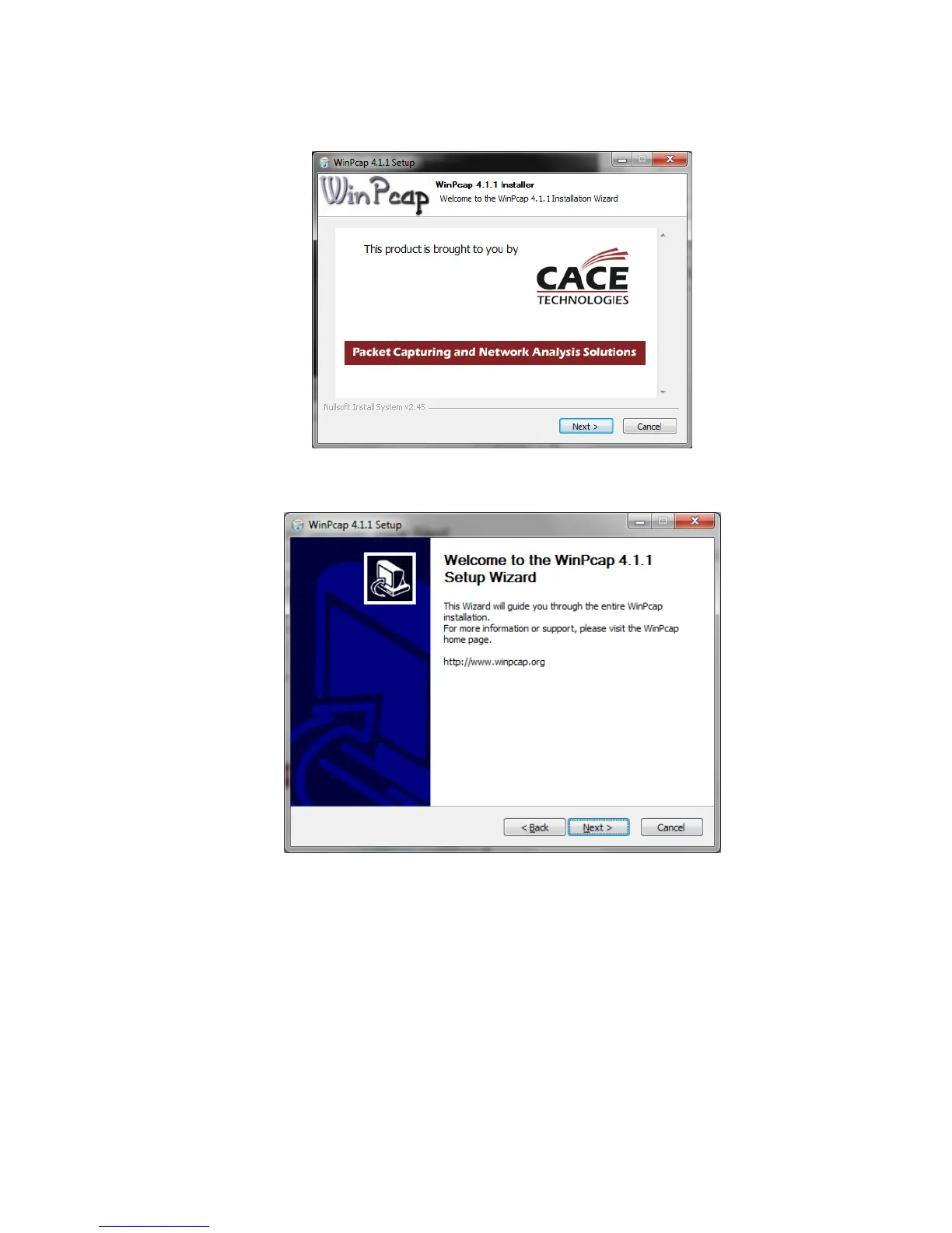 prompt does not appear, you may already have the WinPcap application installed. If so, please