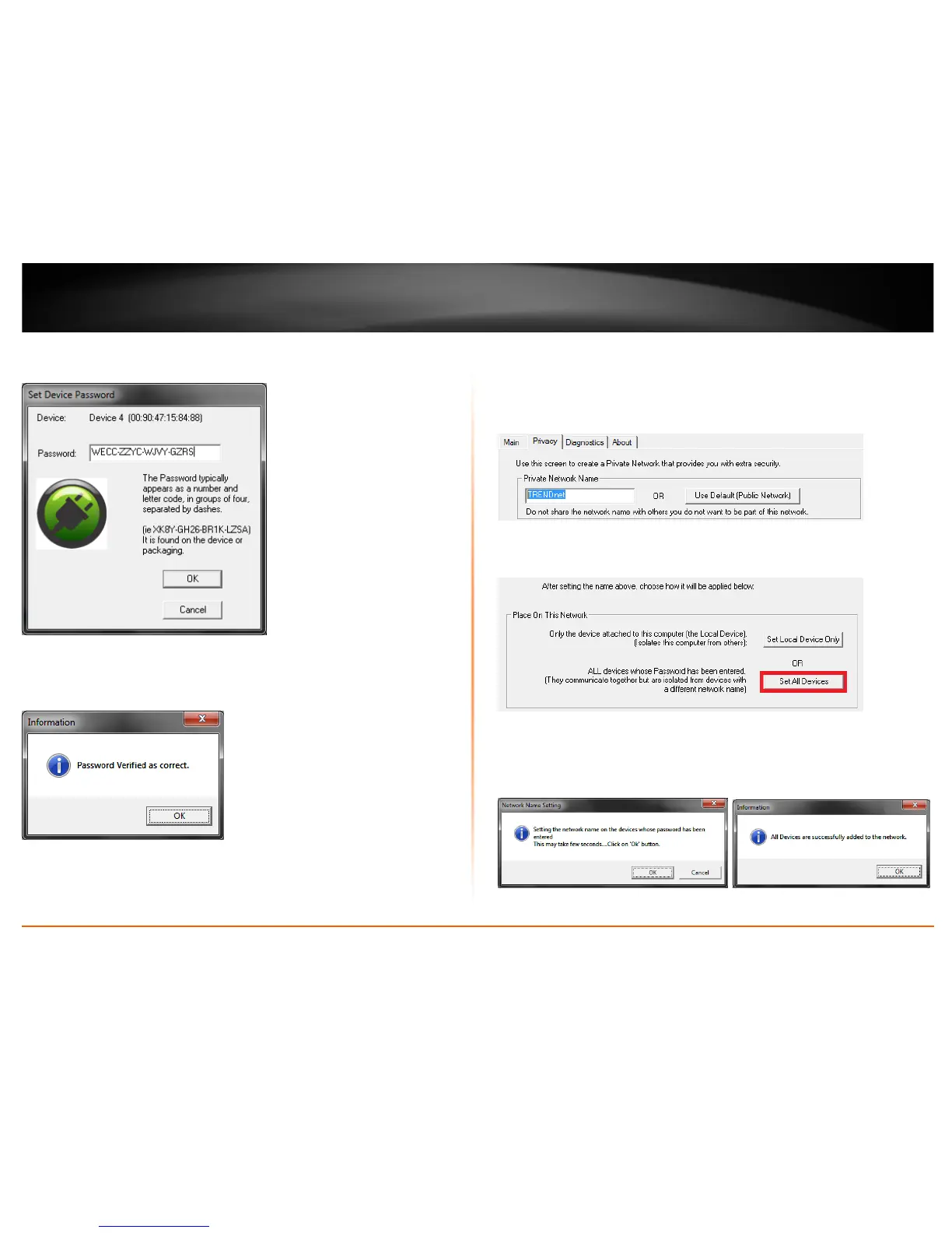 1. In the Powerline Utility Privacy window, under Private Network Name, enter the new