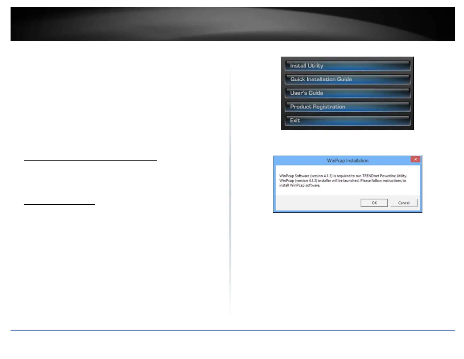 Note: The Powerline Utility requires WinPcap as a base application. If this prompt does