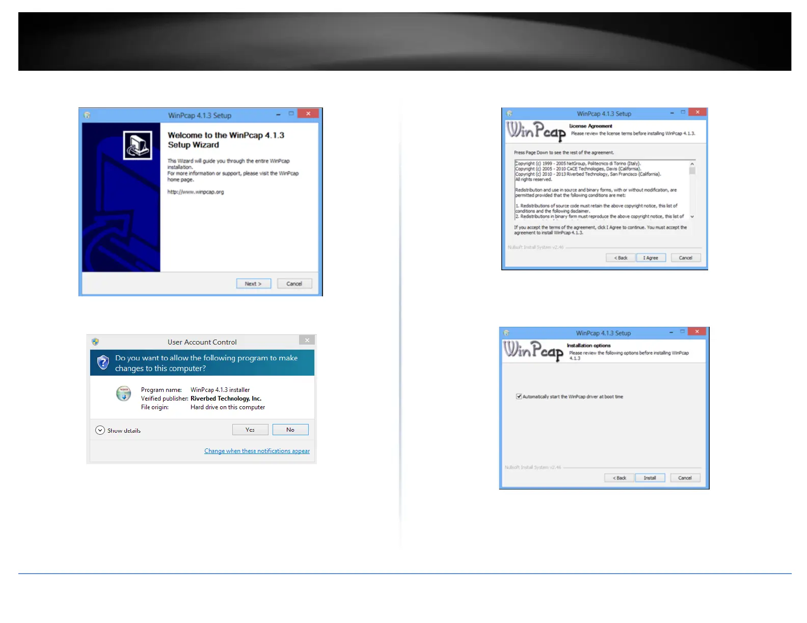 5. At the WinPcap installer window, click Next.