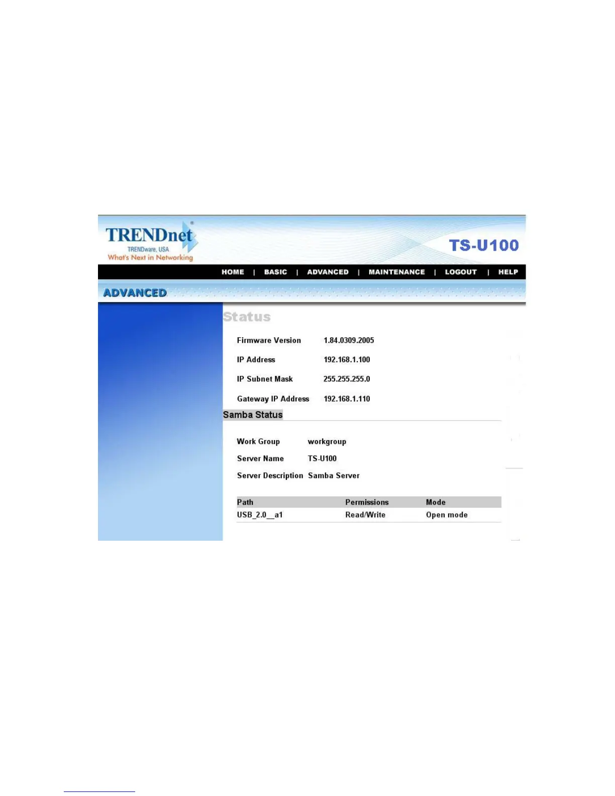 TRENDnet TS-U100 - Advanced Status