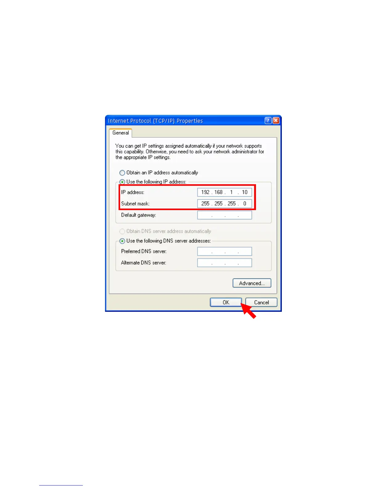 Suggested IP Address is 192.168.1.x (x is 3~254), and suggested
