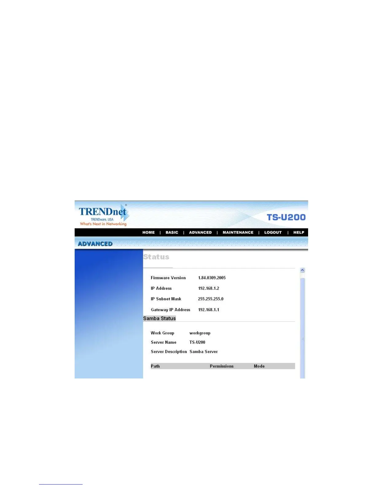 its basic status and the Samba server status.