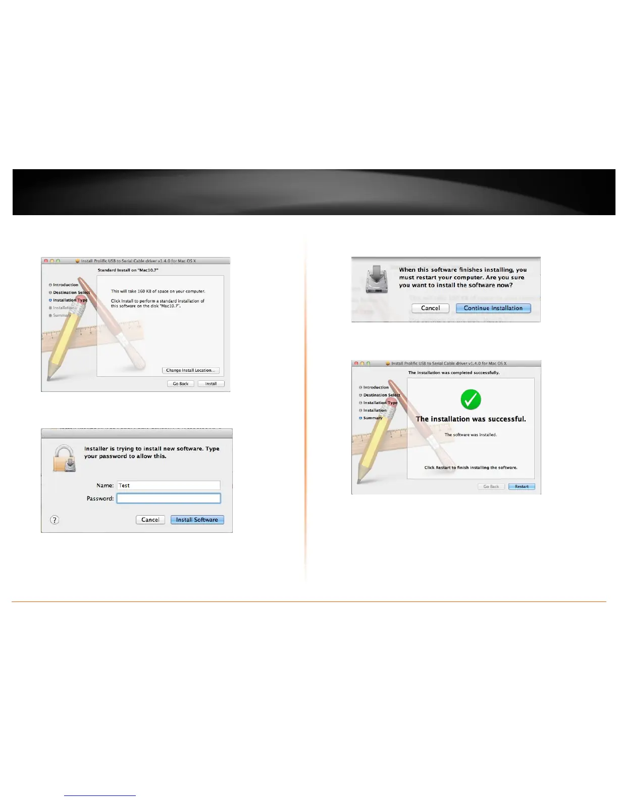 9. Click Restart to finish installing the driver and reboot your Mac.