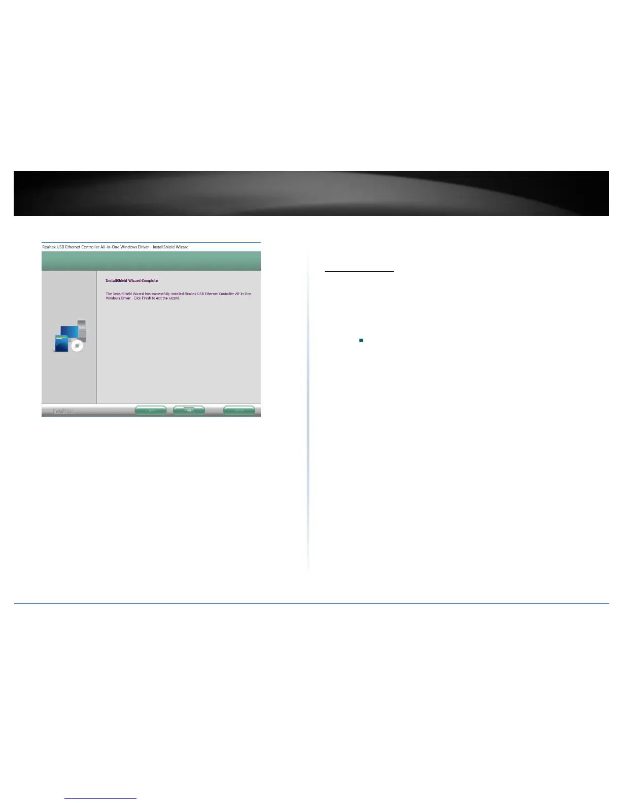 6. Once the driver installation is complete, click Finish to exit the Install Wizard.