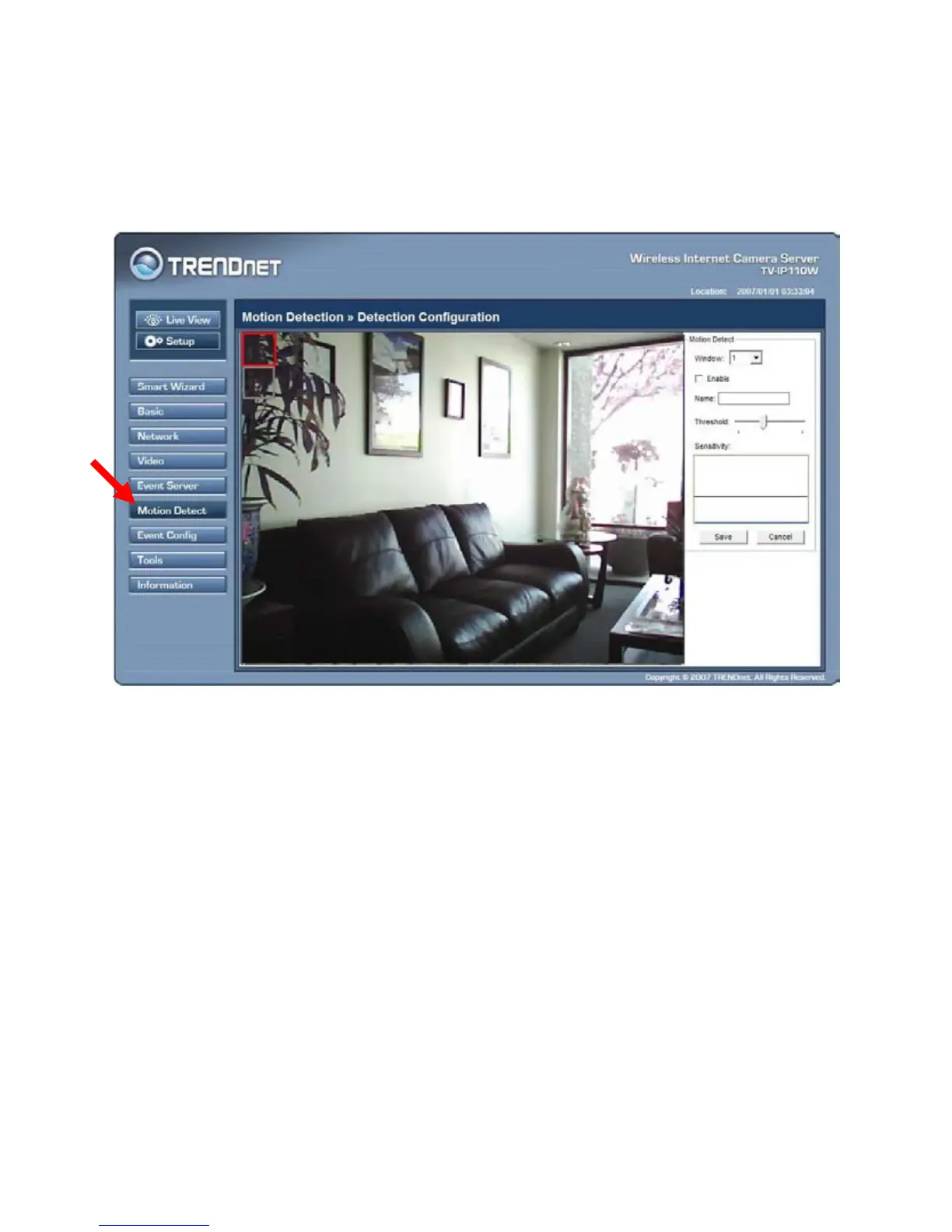 To enable the detecting area, select Window 1 or 2 from the pull-down list,