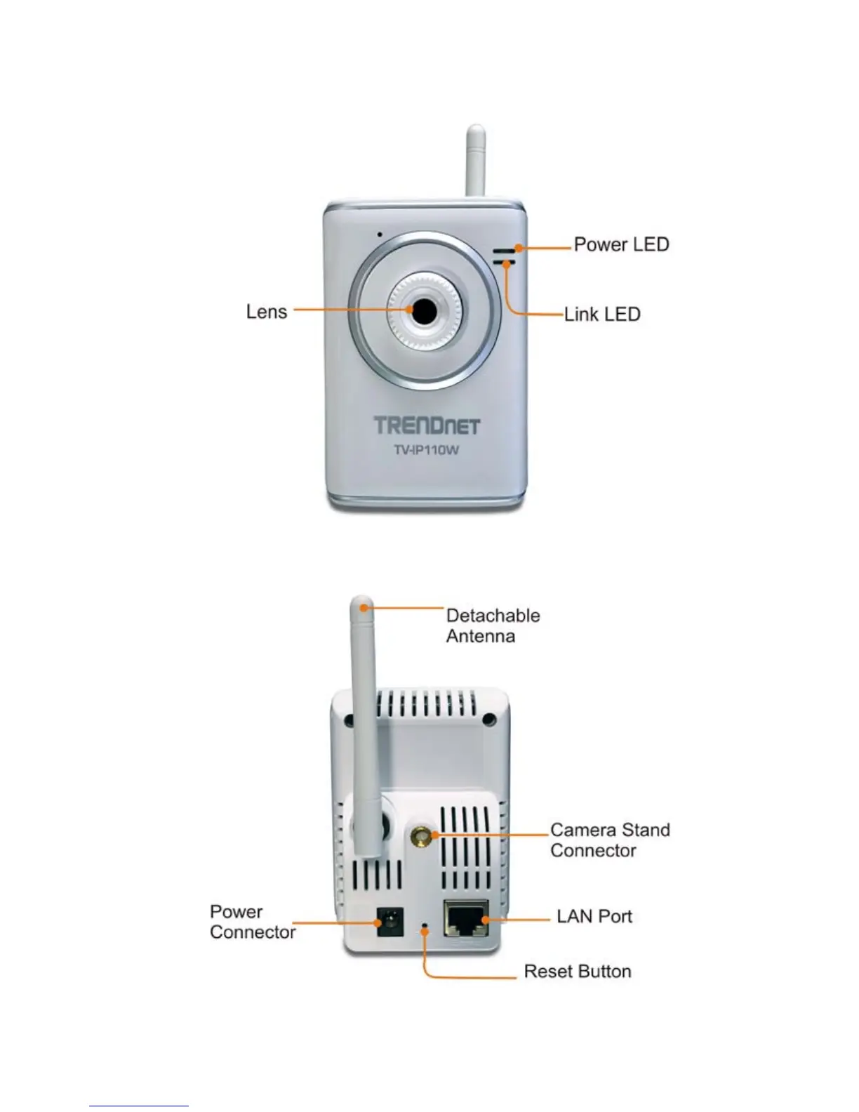 TRENDnet TV-IP110 - TV-IP110 W (Front;Back View)