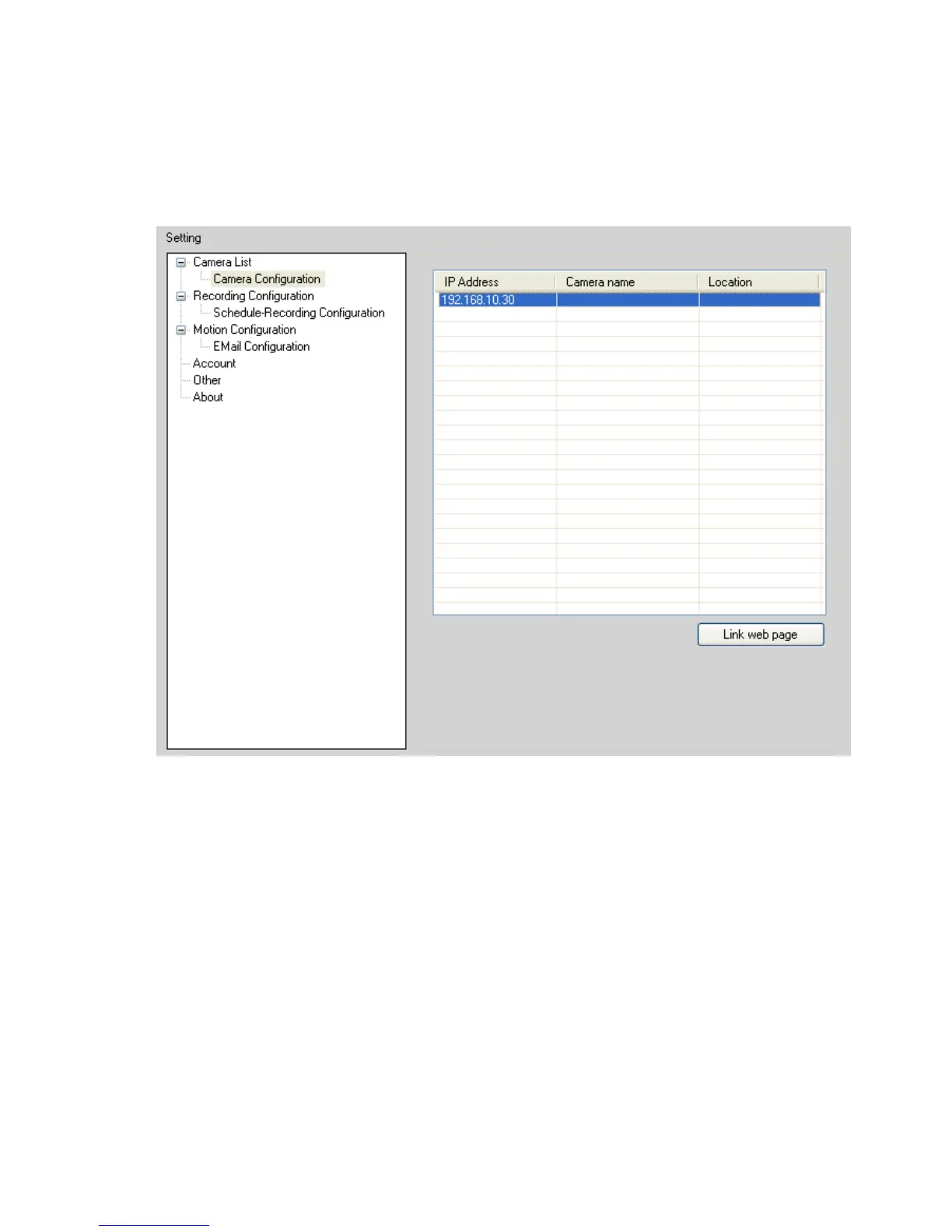 Click SETTING > Camera List > Camera Configuration and then Link