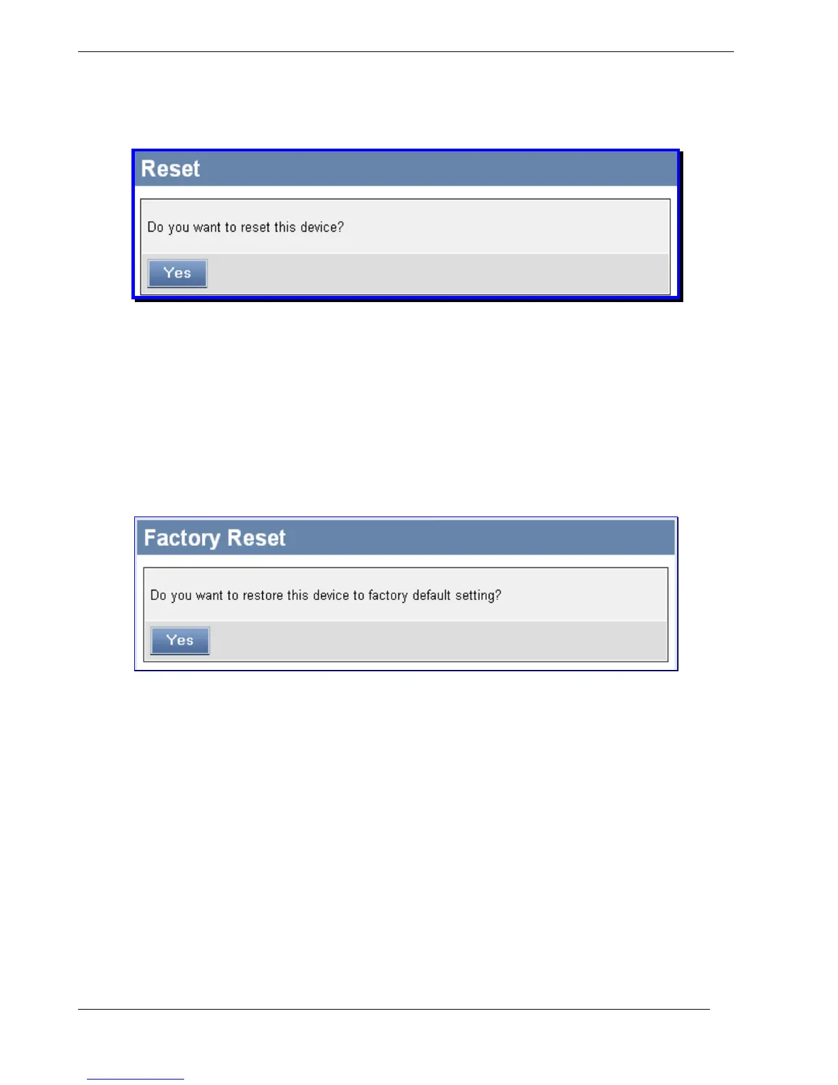 Clicking the Yes button will reset the Camera back to factory default settings. If you do not want to