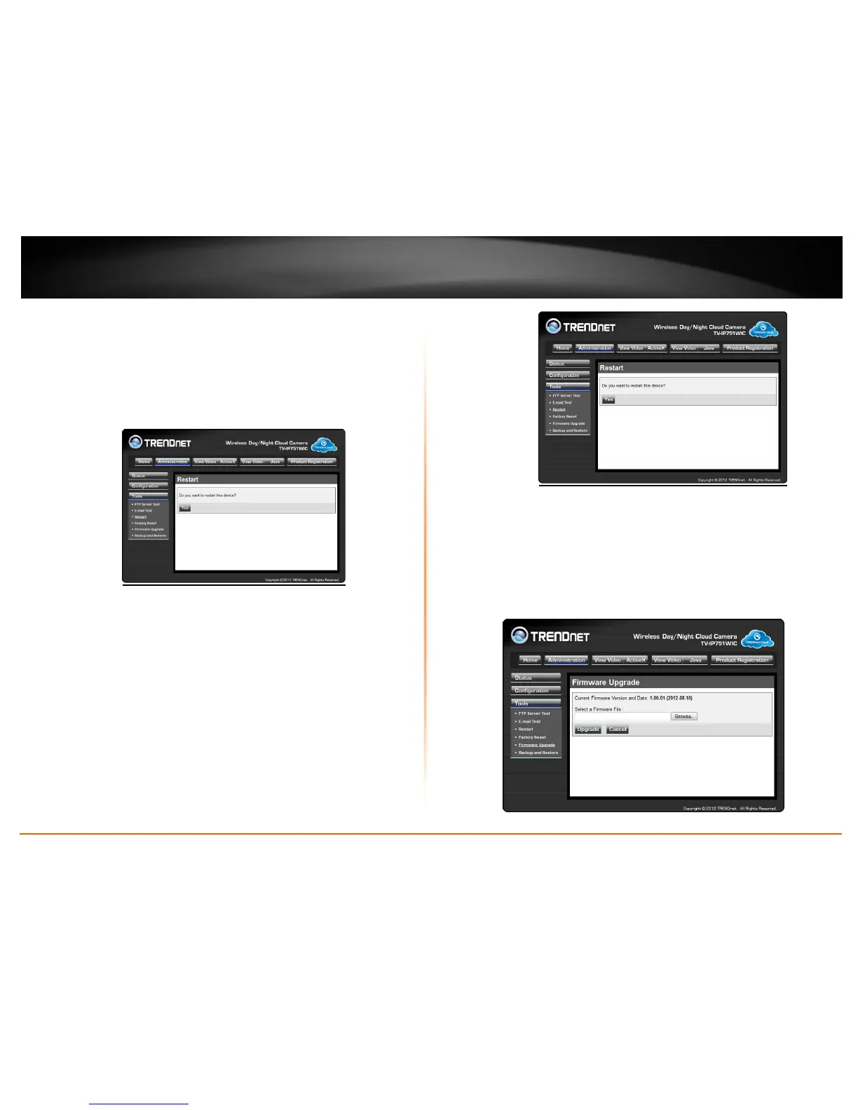 If you should need to restart the IP camera, you can do this from this screen.