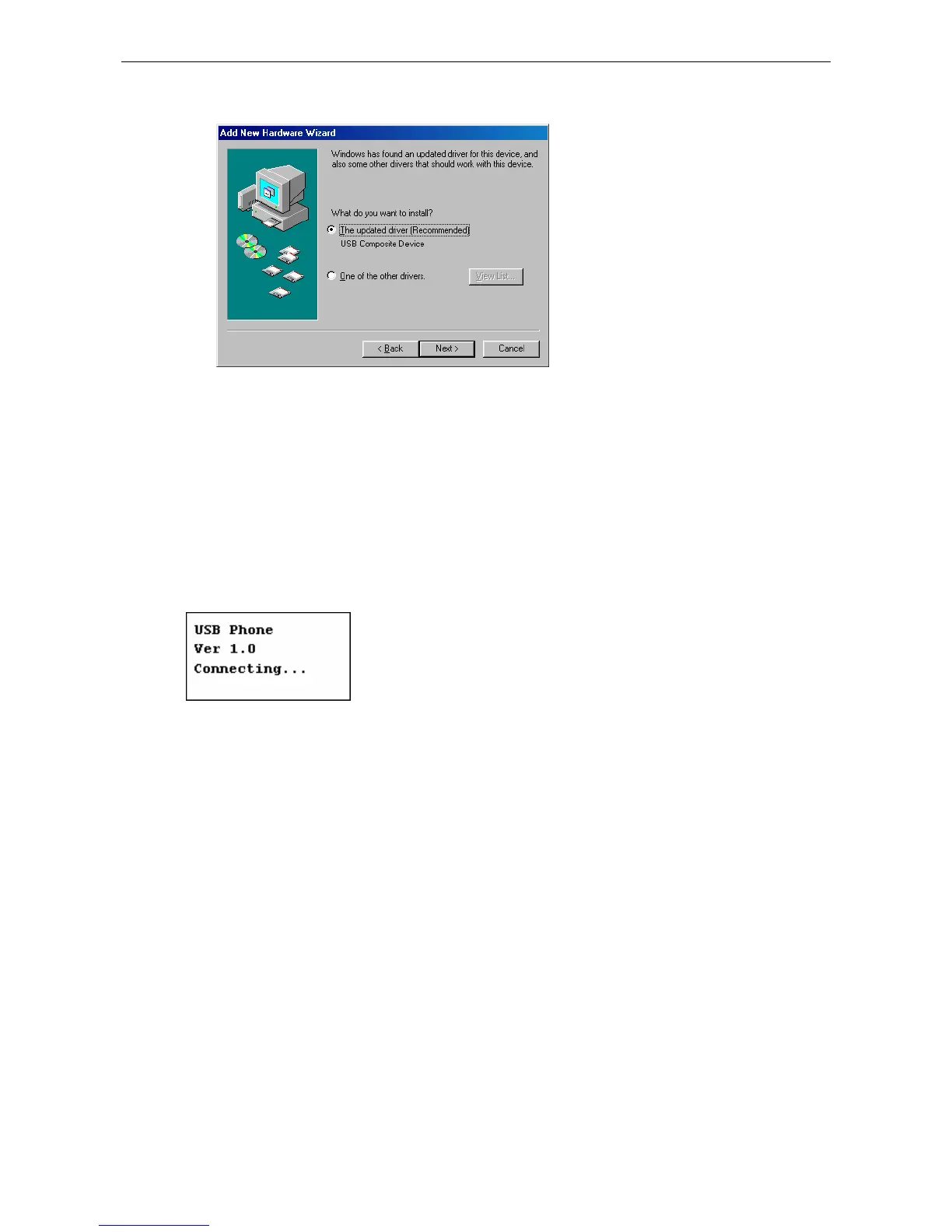 In Windows 98 and ME, the LCD always displays Connecting…as shown below